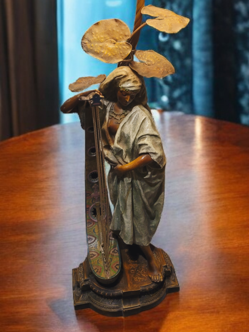 🔱Escultura De Bronce "Jeune Harpiste Arabique" de Louis Hottot - Una Obra Maestra en Venta🔱