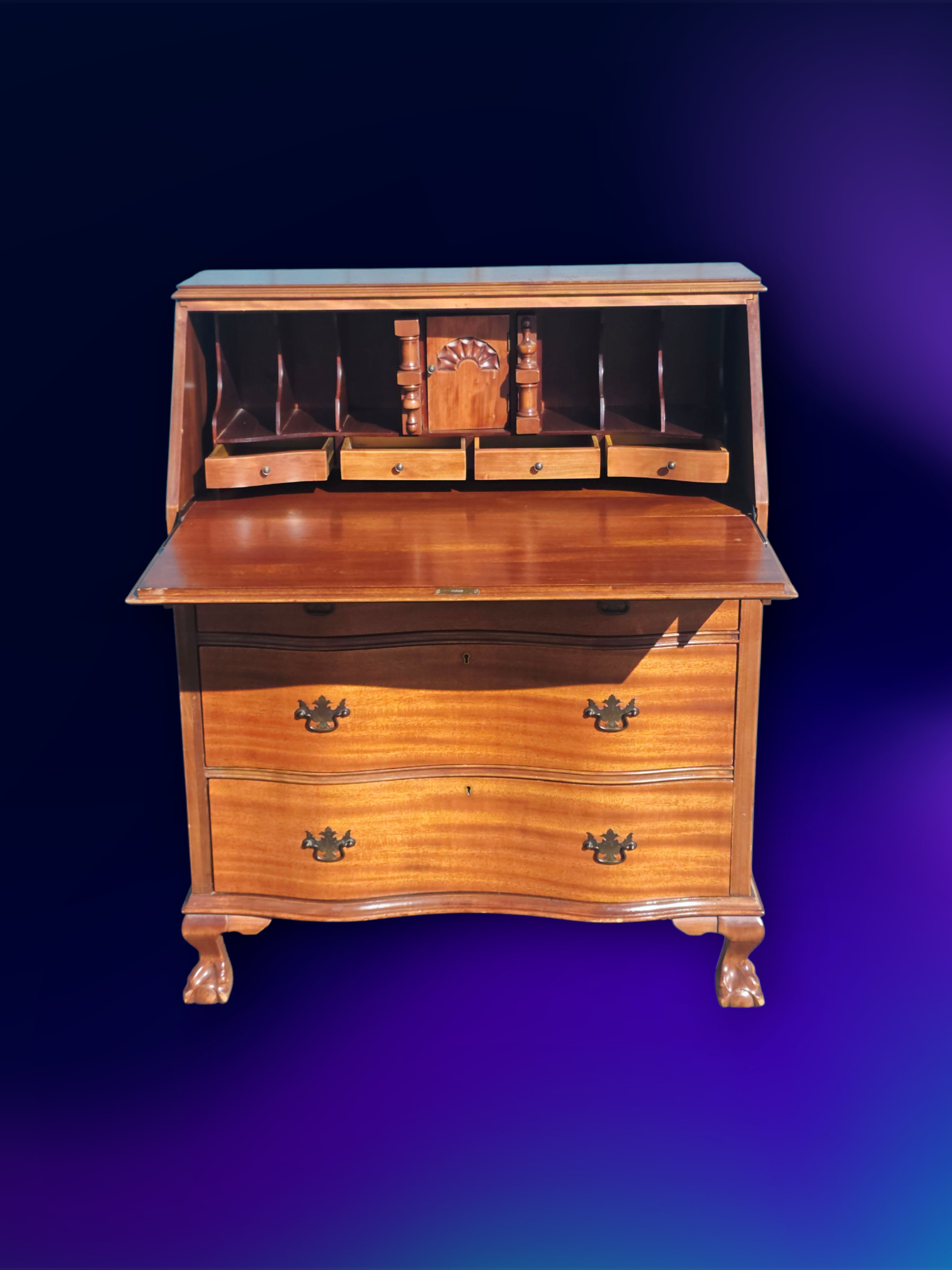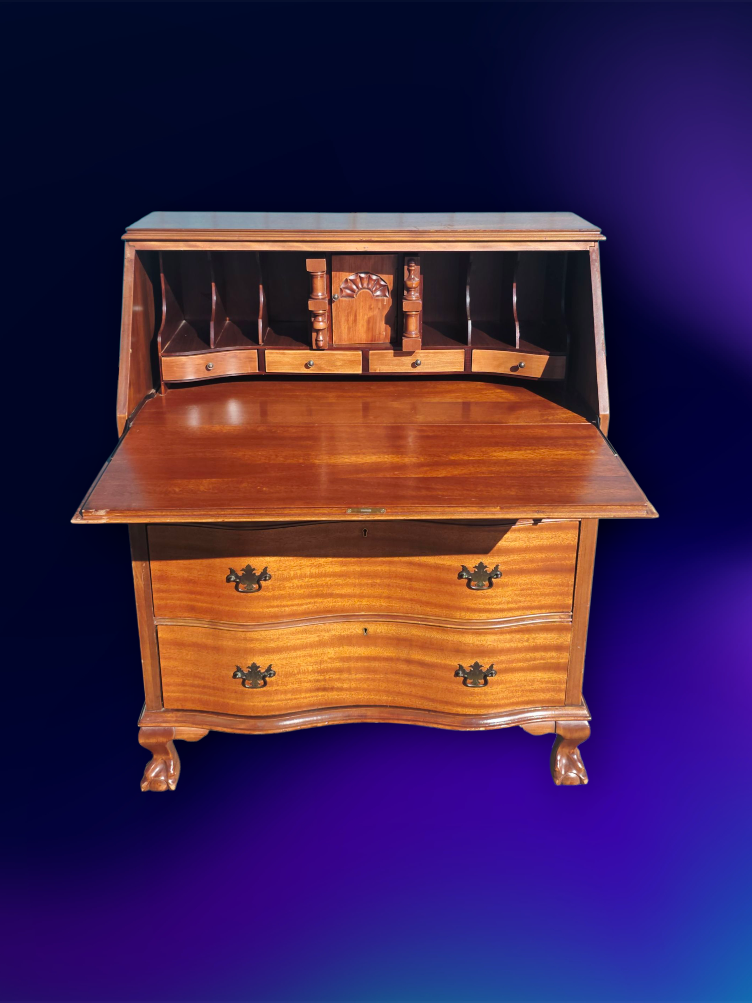 ✒️ Antique Secretary Desk in Tiger Maple Wood – Federal Elegance with Claw and Ball Feet 🪶
