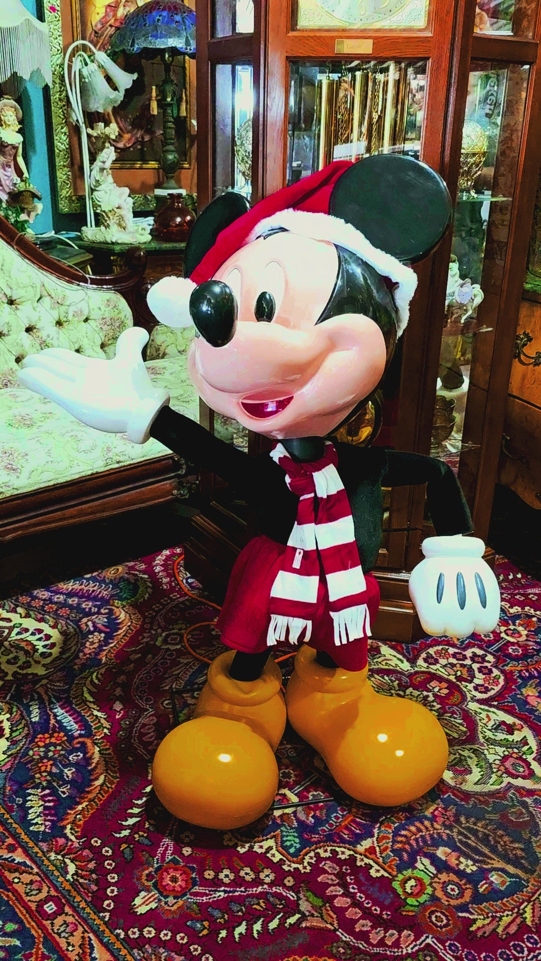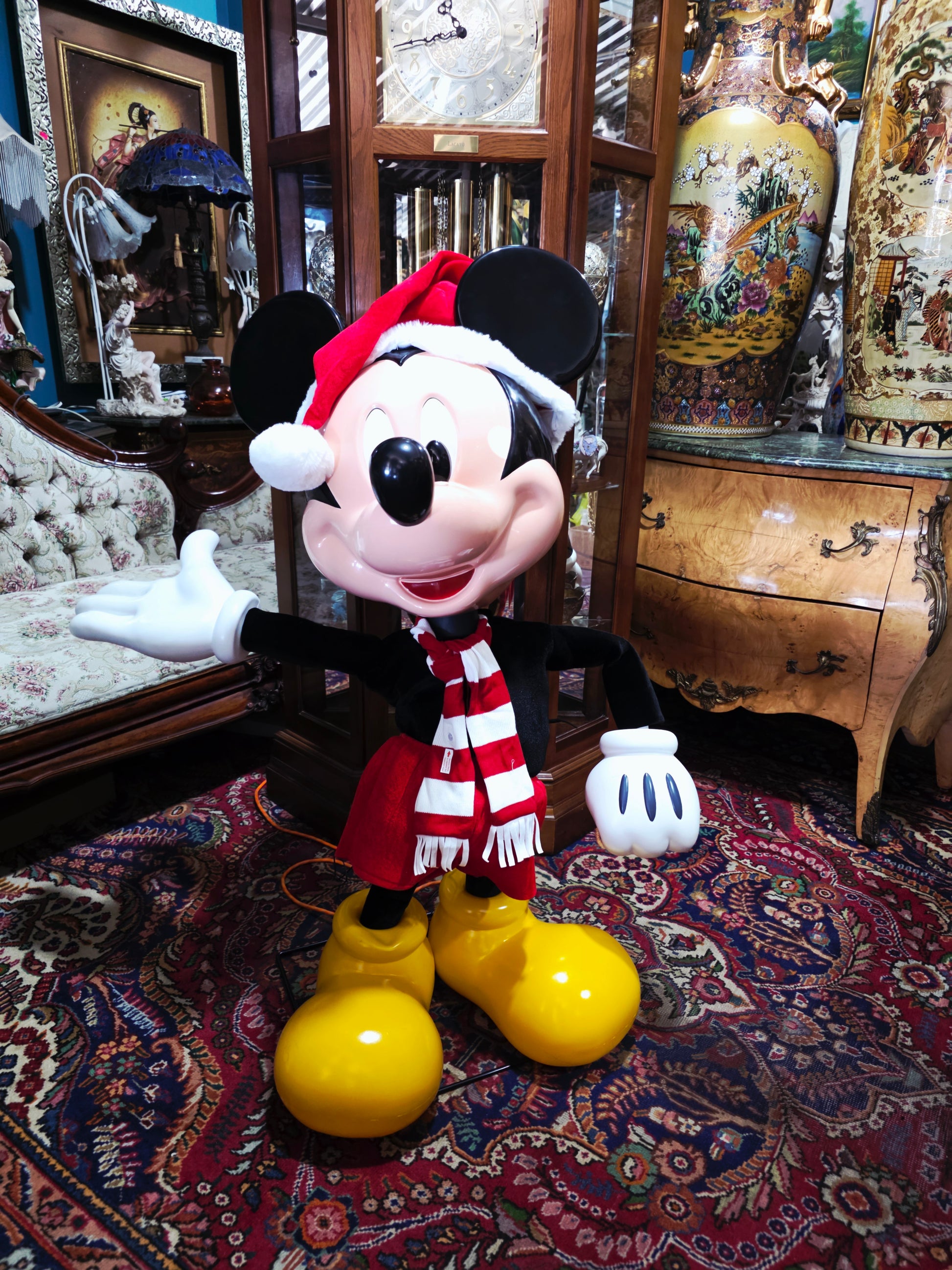 The magic of Disney comes to life at Rosarito Antiques! We present this spectacular animated Mickey Mouse figure in Christmas attire , a striking piece that transforms any space into a festive and enchanting setting.