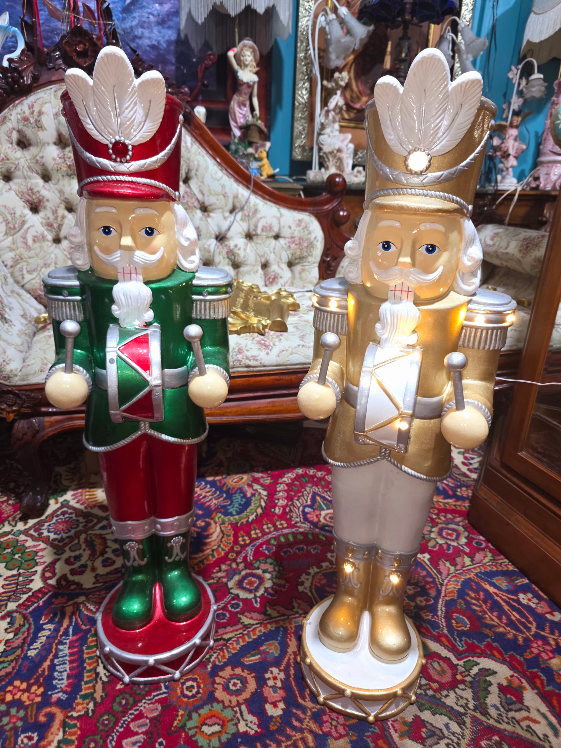 Rosarito Antiques presents this pair of large-scale decorative nutcrackers, a festive composition that blends European tradition with contemporary splendor. With their regal bearing and luminous details, these figures not only decorate but transform any space into a setting of elegance, fantasy, and celebration.