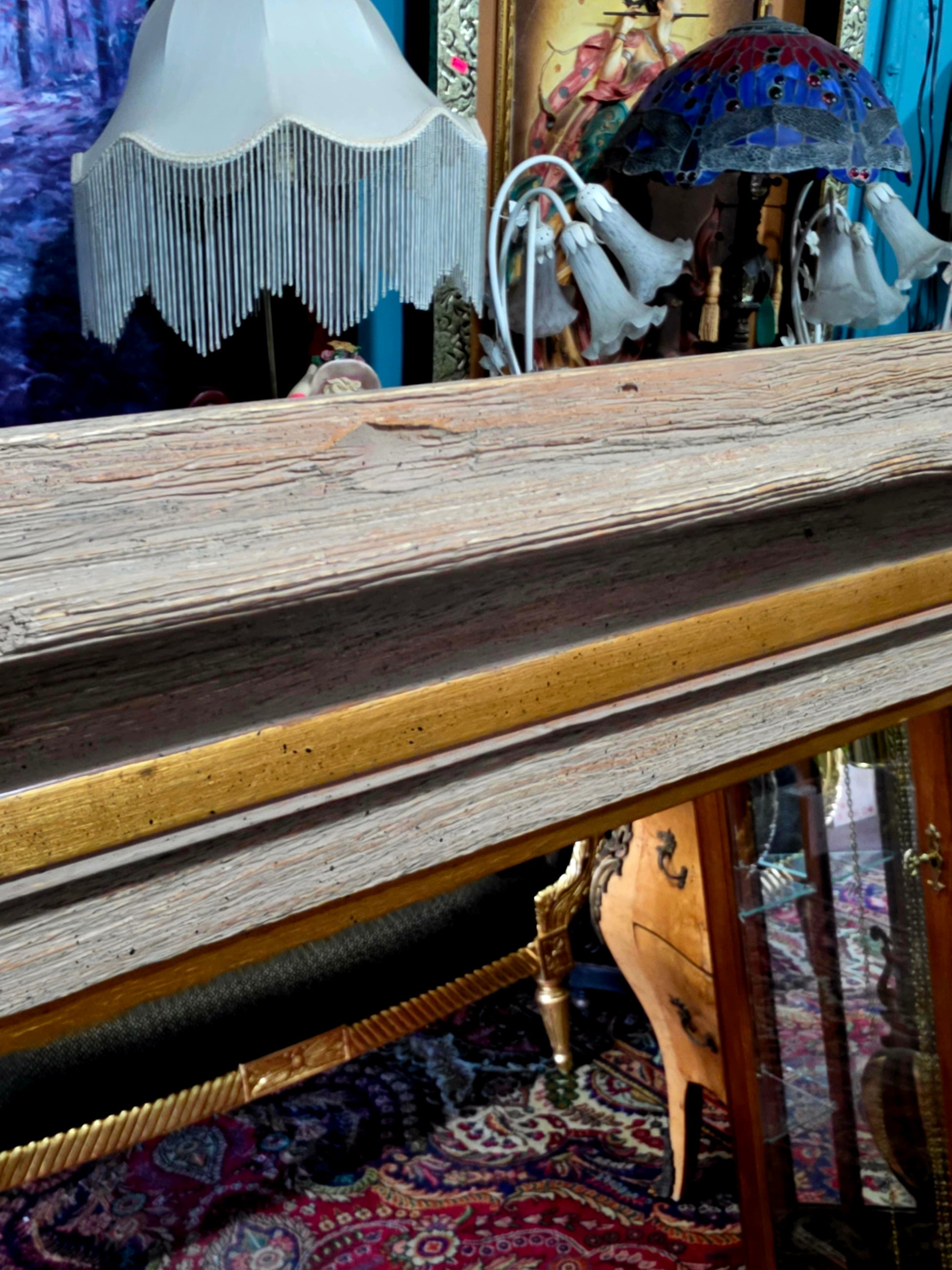 π Its solid wood frame, with its rustic texture and visible grain, retains the character of time: scars, warm tones, and marks that tell its story. The gilded inner rim adds a refined accent, creating a subtle contrast between the organic and the ornamental.