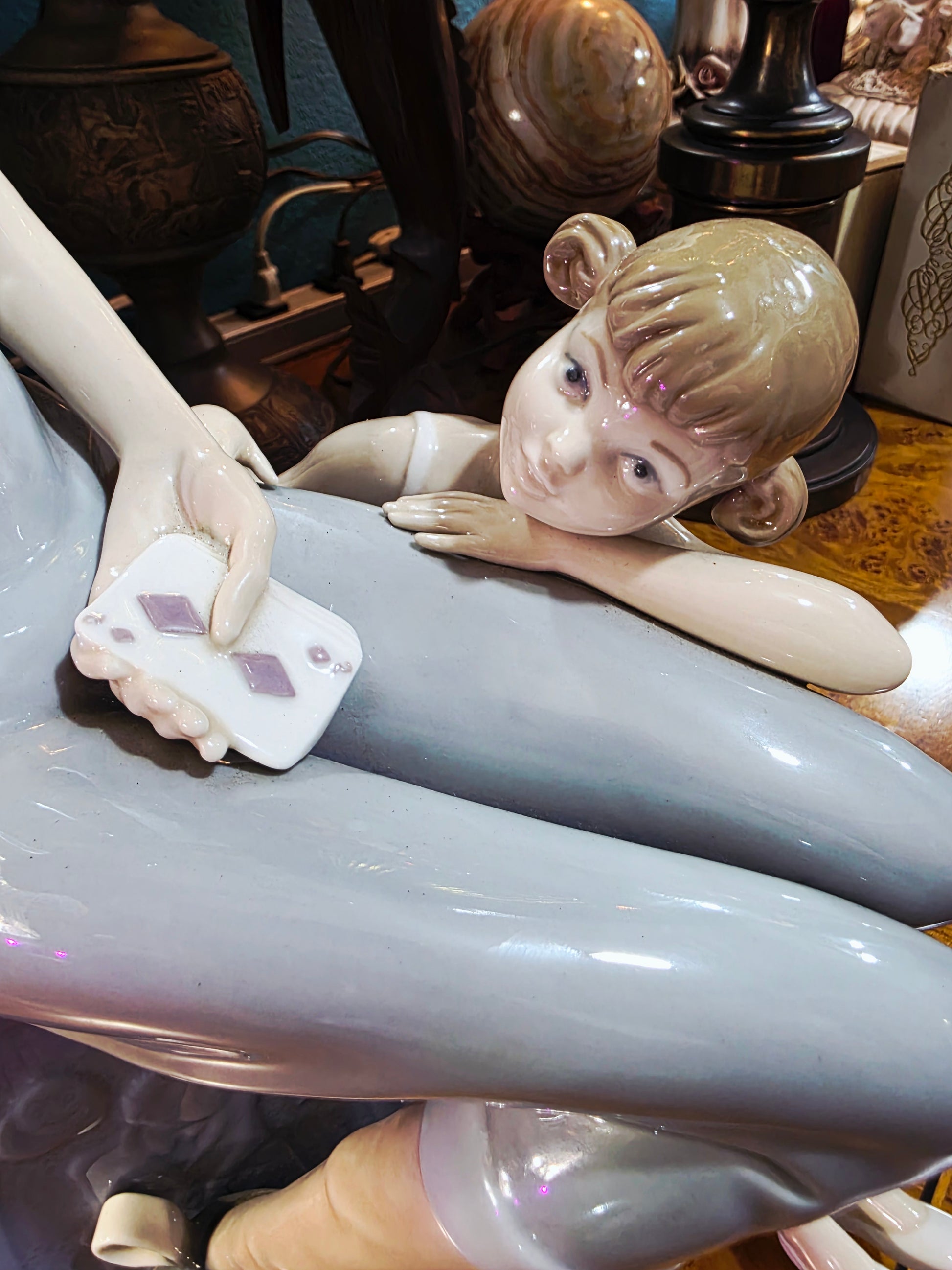 Rosarito Antiques presenta con orgullo una joya escultórica de la firma Lladro: Magic, también conocida como Juego de Cartas, diseñada por el maestro Salvador Furió. Emitida en 1969 y retirada en 1985, esta obra captura un instante lúdico y elegante entre dos bailarinas, transmitiendo complicidad, gracia y la magia del juego. 🃏✨