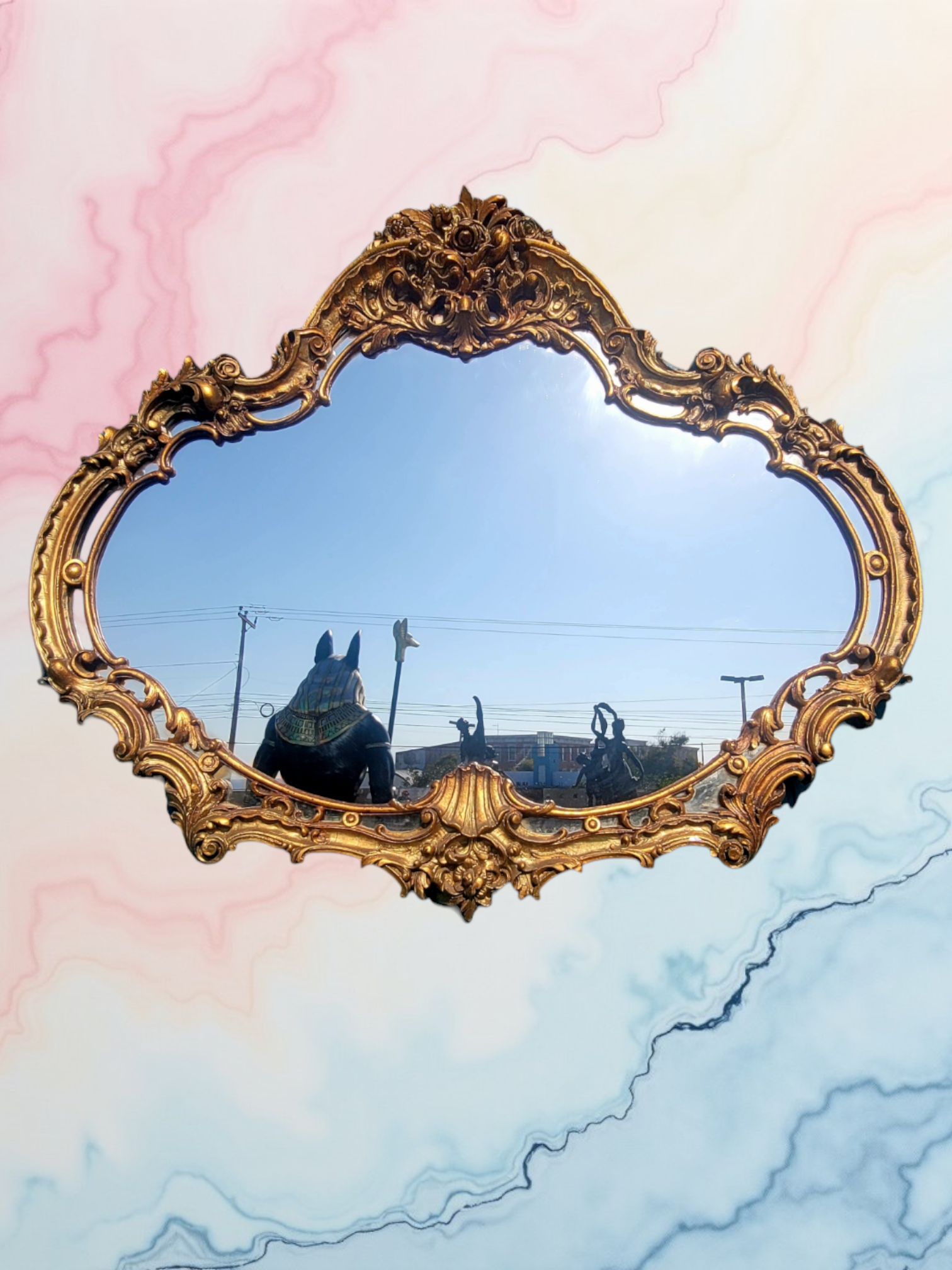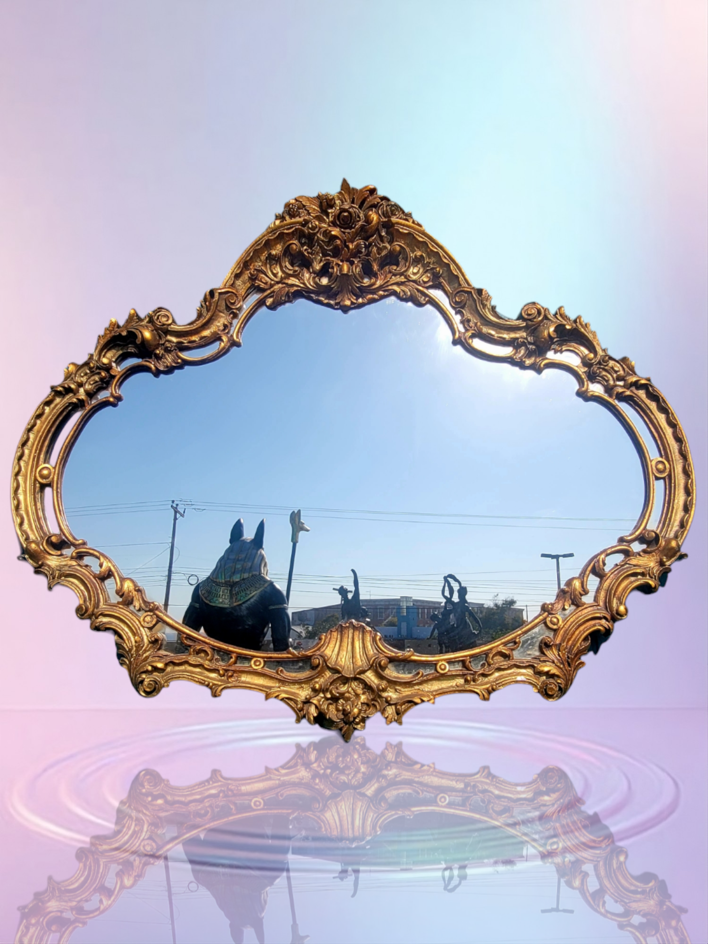 #RosaritoAntiques #EspejoHollywoodRegency #ArteEnAntigüedades #DecoraciónConEstilo #HogarElegante #GlamourDeHollywood #DecoraciónDeLujo