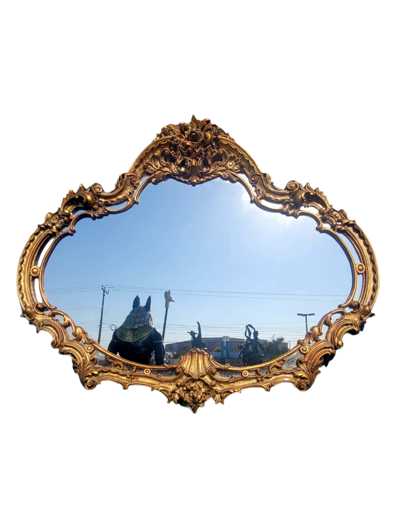 Descubre el lujo y la opulencia con este impresionante espejo estilo Hollywood Regency, una verdadera declaración de glamour que transformará cualquier habitación en un espacio sofisticado y elegante. 🪞✨