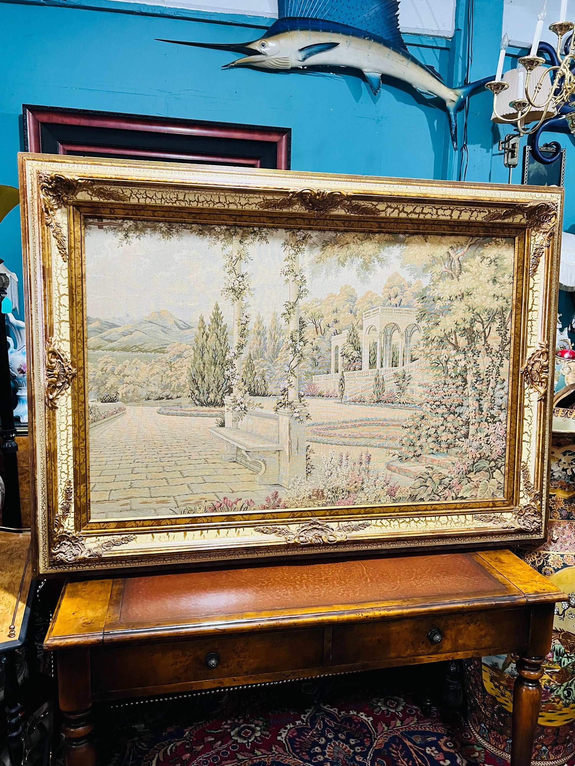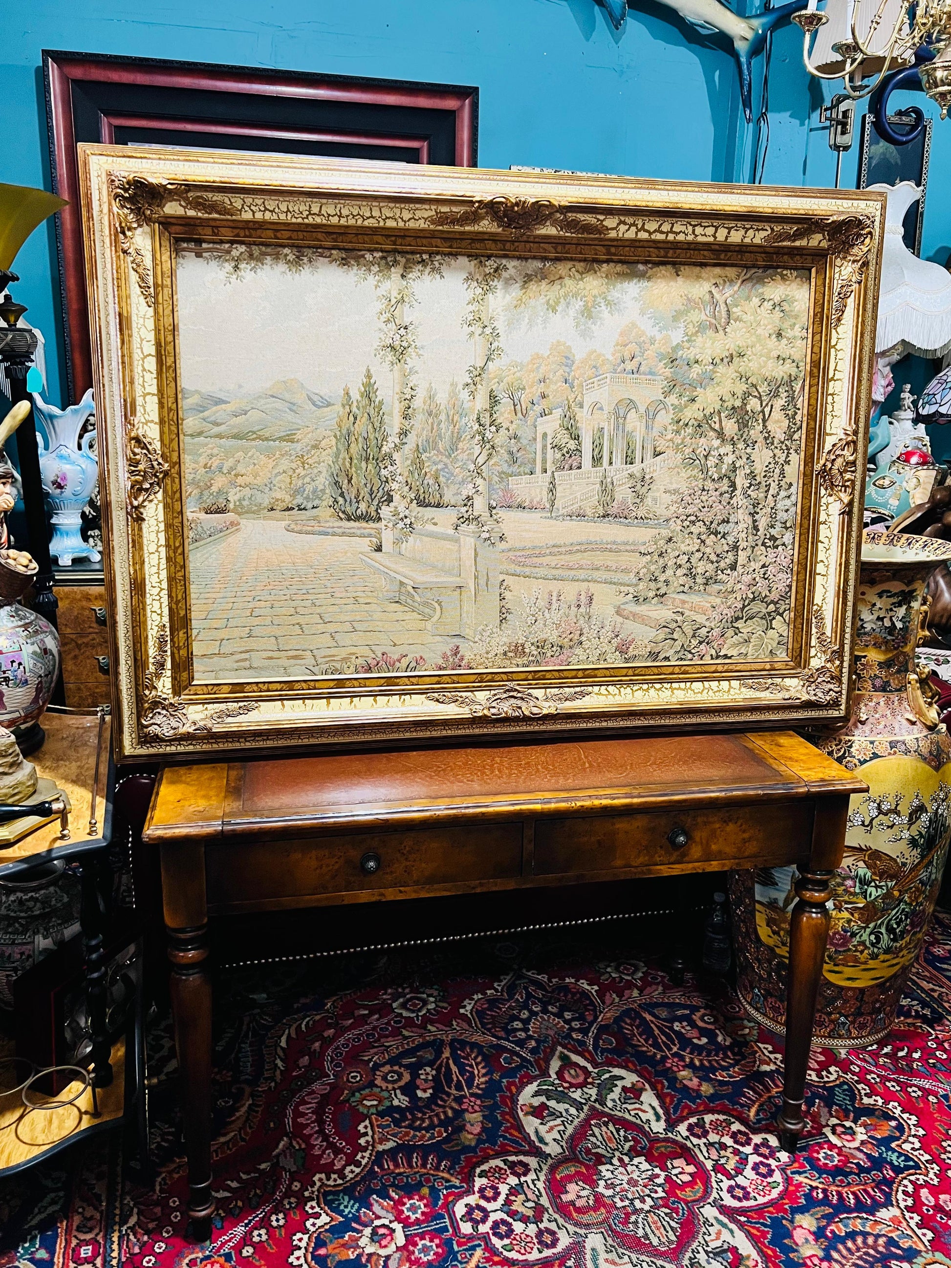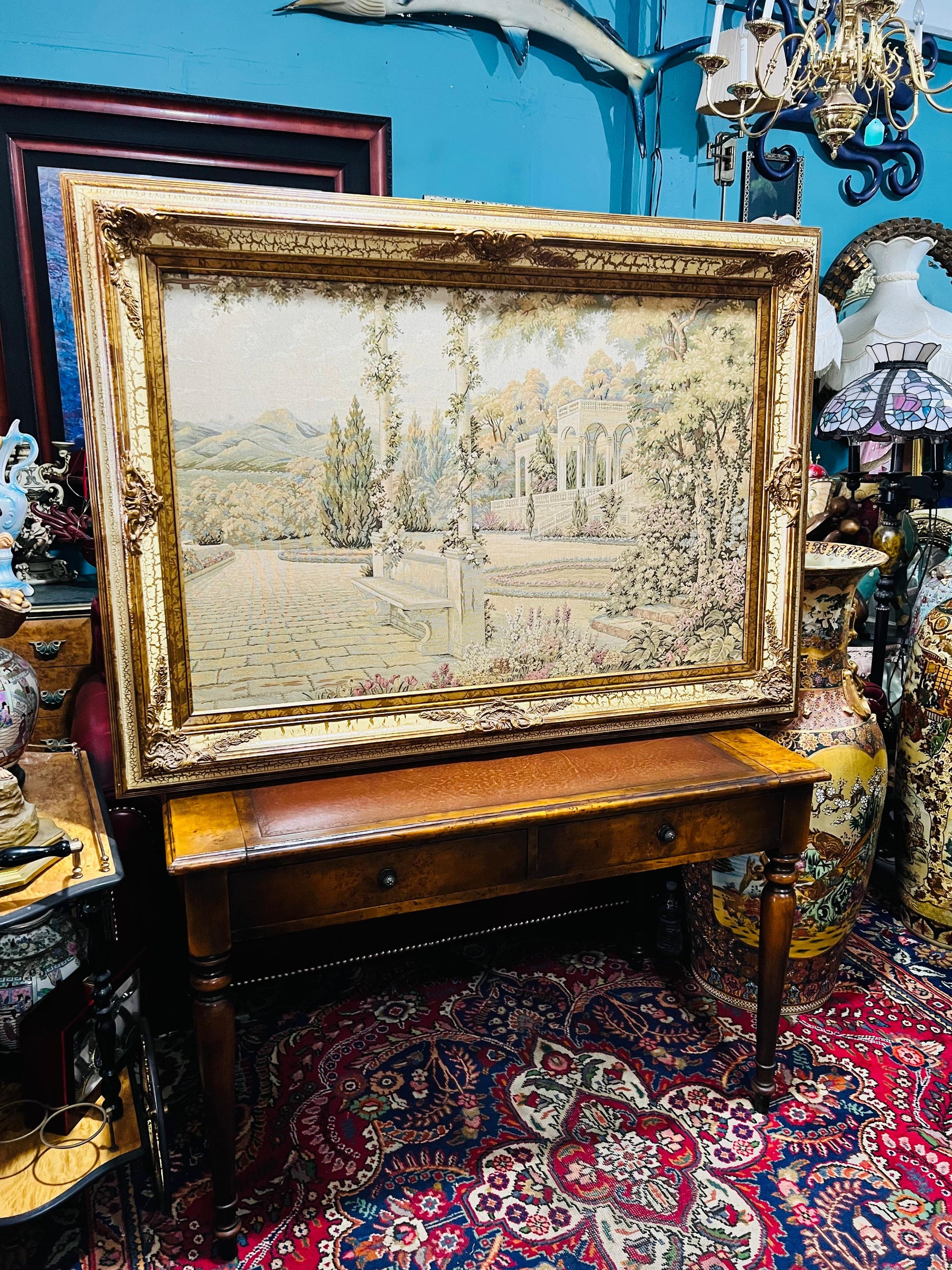 #RosaritoAntiques #Gobelino #ArteTextil #DecoraciónClásica #PaisajeMediterráneo #Antigüedades #Coleccionismo #PiezasÚnicas #CompraAntigüedades