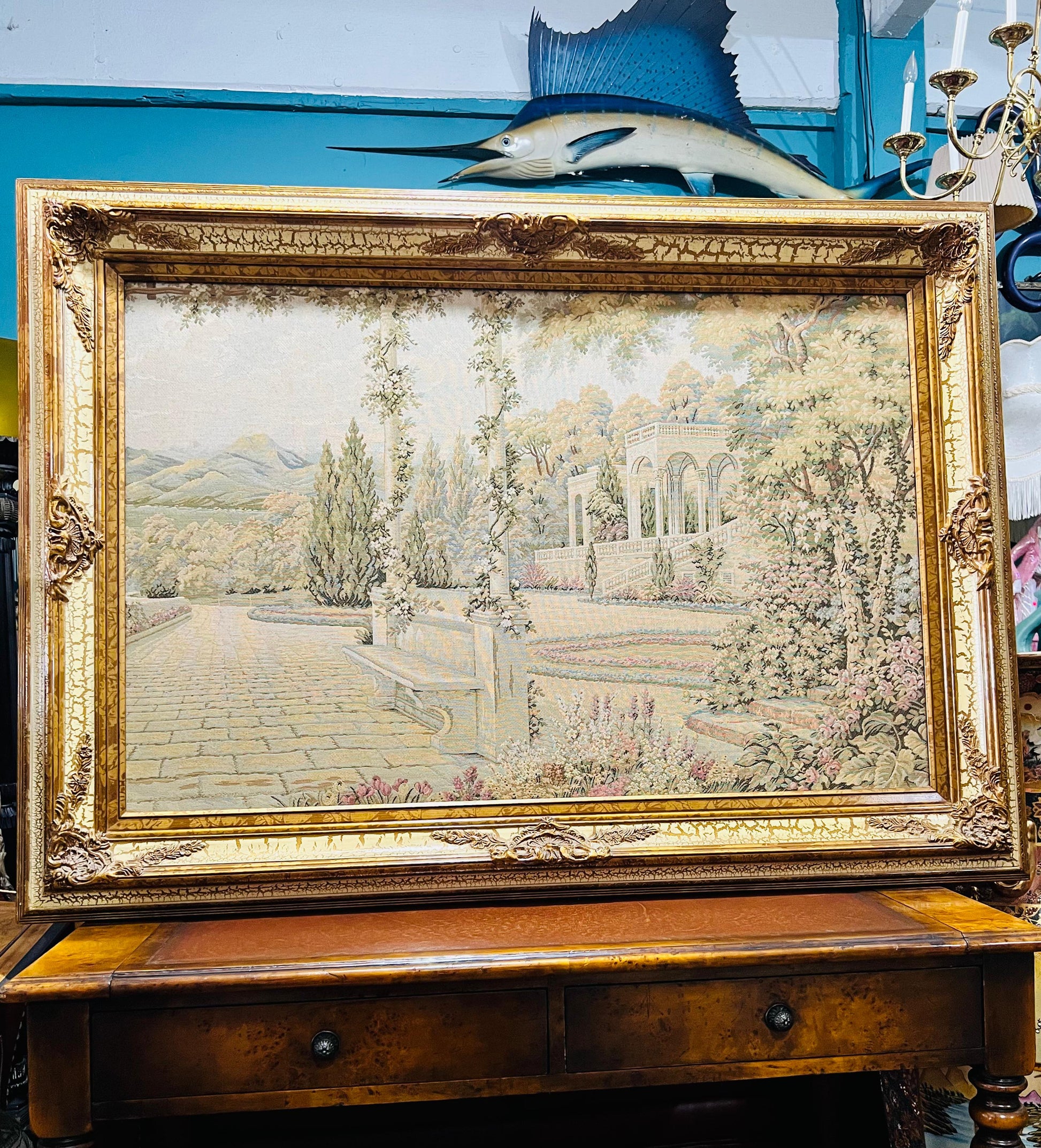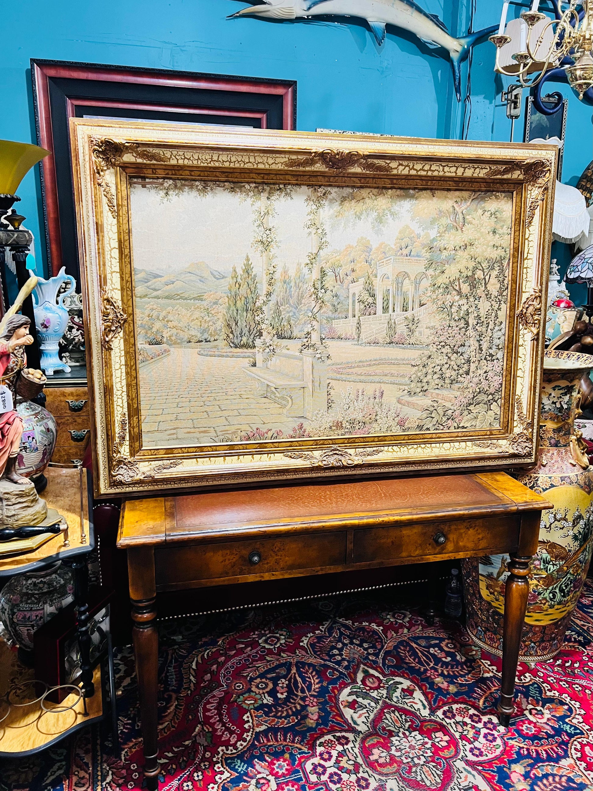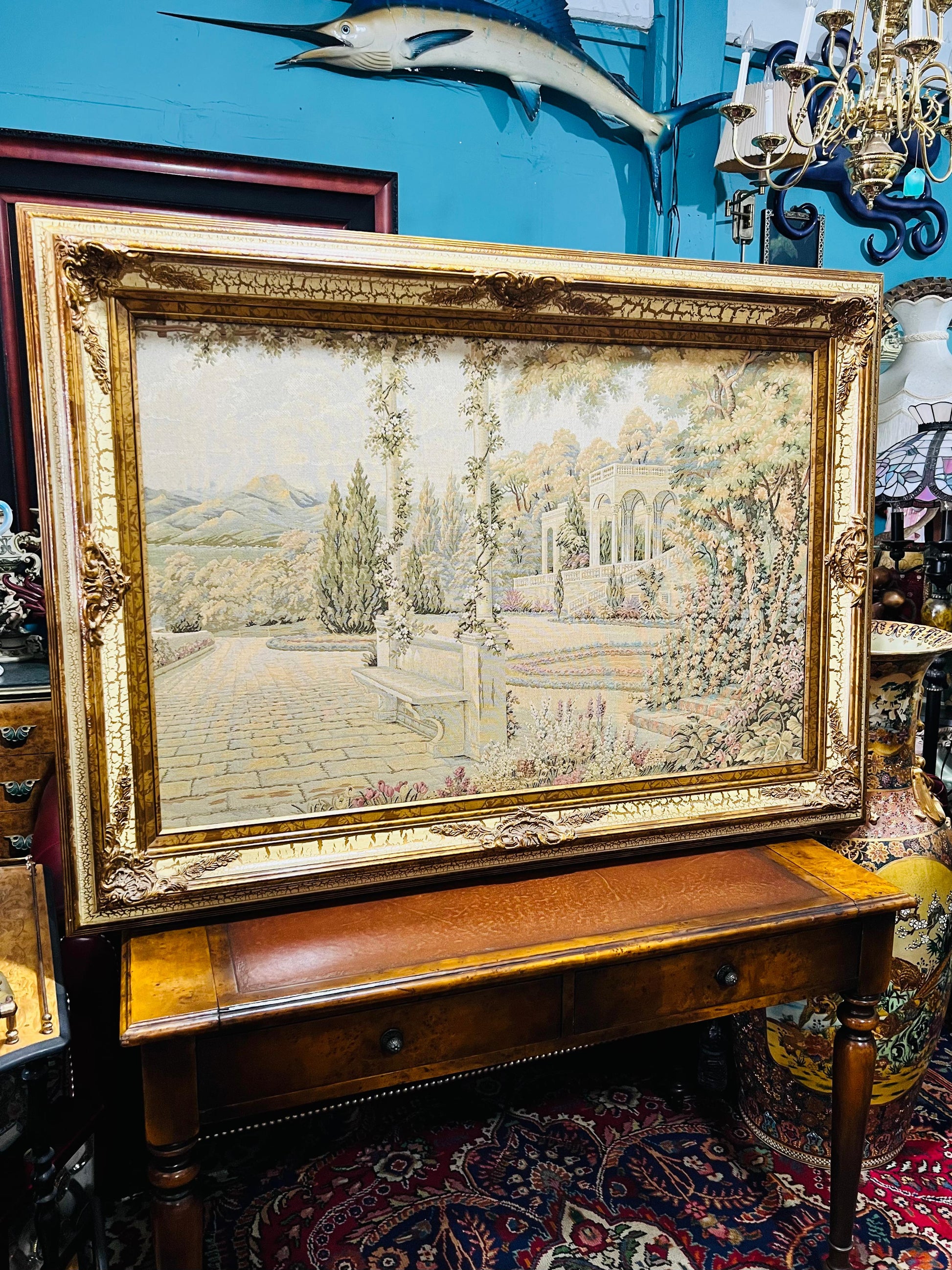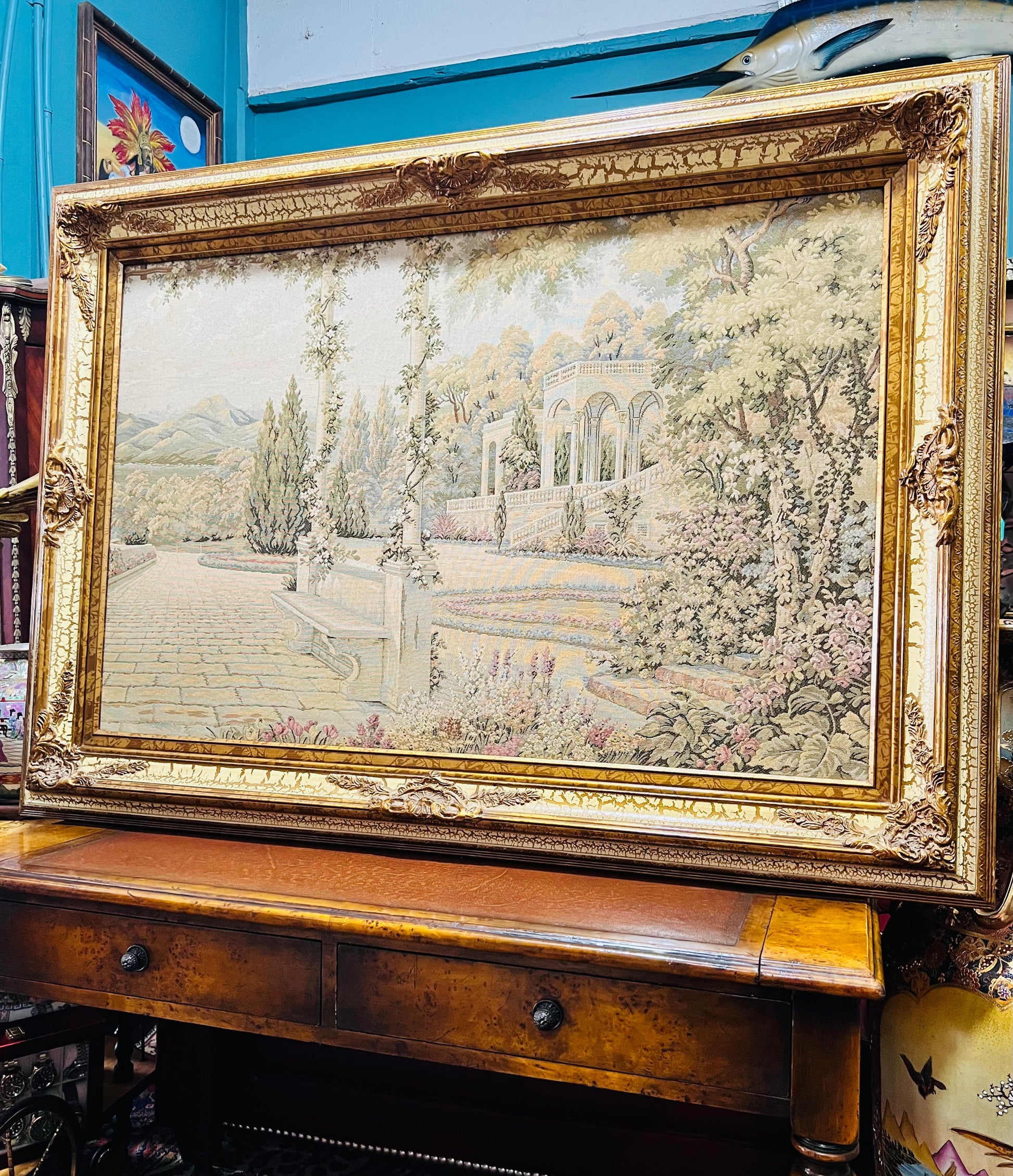 #RosaritoAntiques #Gobelino #ArteTextil #DecoraciónClásica #PaisajeMediterráneo #Antigüedades #Coleccionismo #PiezasÚnicas #CompraAntigüedades