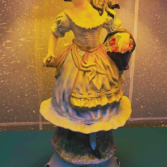 🔹 Base: Escultura de mujer con vestido clásico, cesta de flores y expresión serena