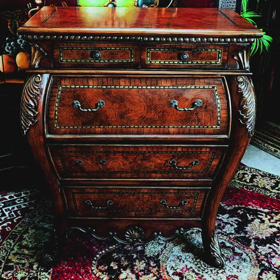 🇫🇷✨ Majestad Abatible: Secreter Bombé con Incrustaciones de Fresno Burl y Acabado Pecan Envejecido 🎩📜