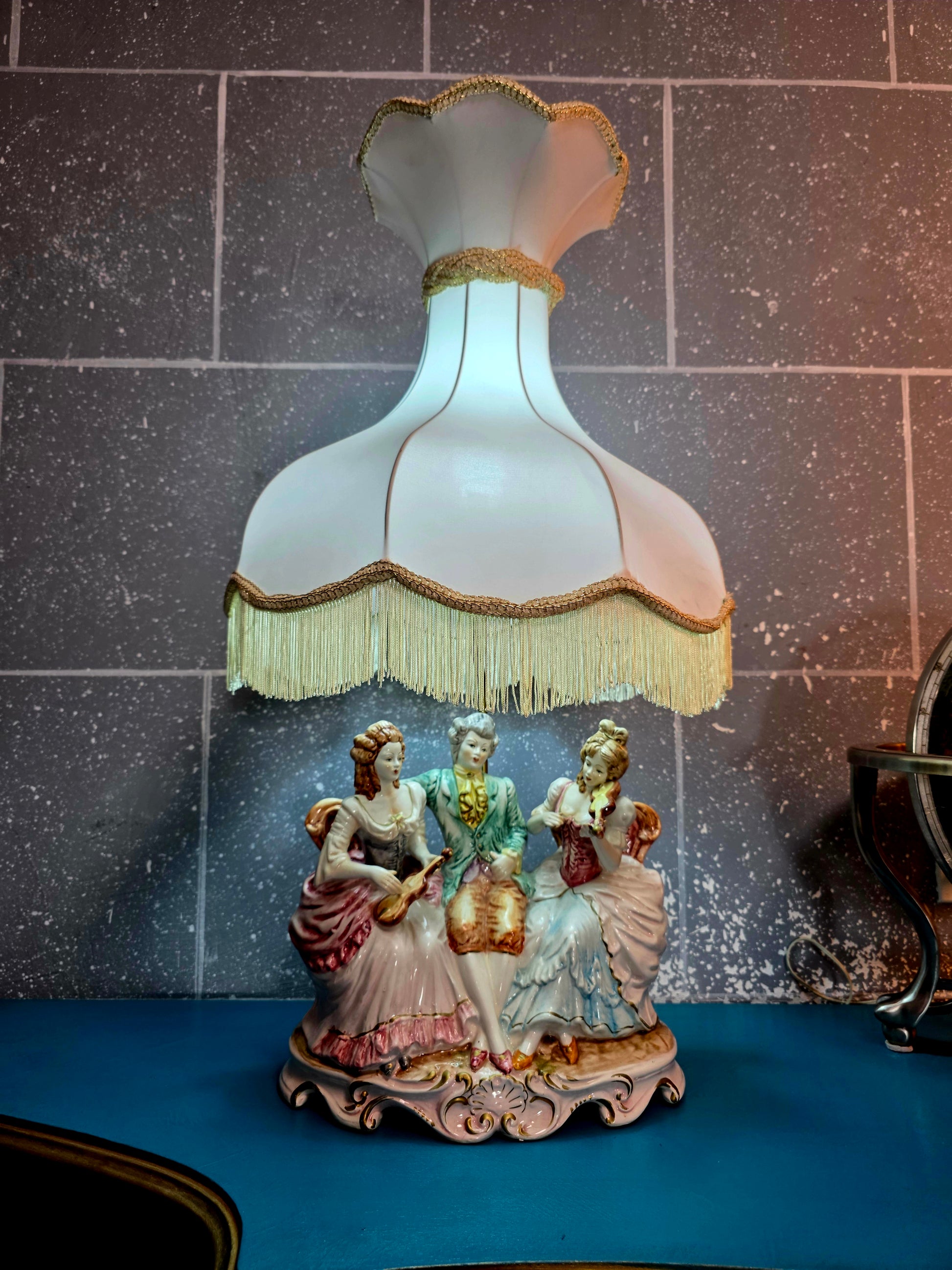 🌸Lampara de Porcelana Fina Capodimonte – Escena Musical Clásica🌸