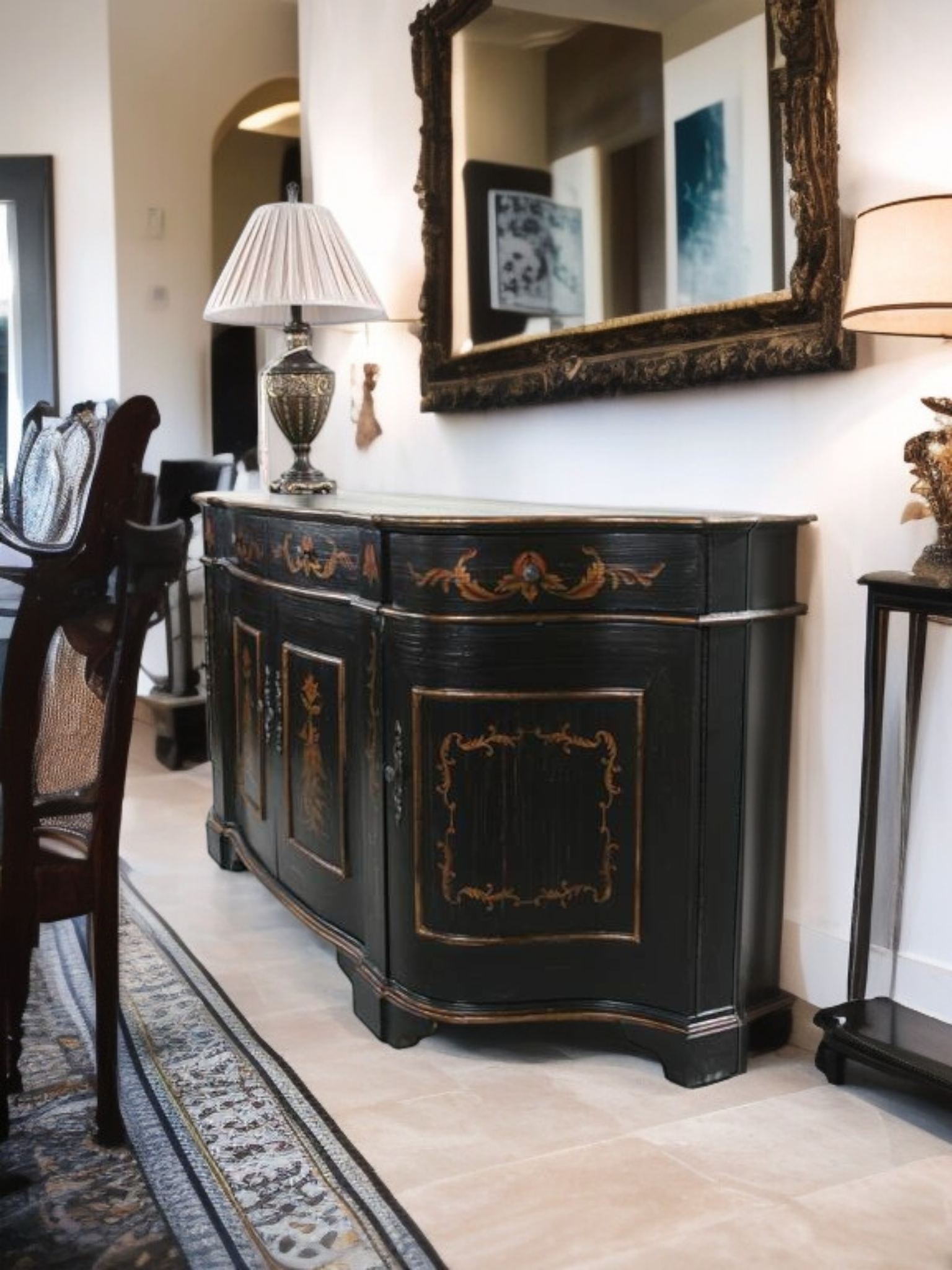 Este bufetero no solo embellece: inspira. Ideal para coleccionistas, amantes del arte decorativo o espacios que requieren un toque de grandeza. Su presencia transforma comedores, salones o despachos en escenarios de sofisticación y narrativa visual.