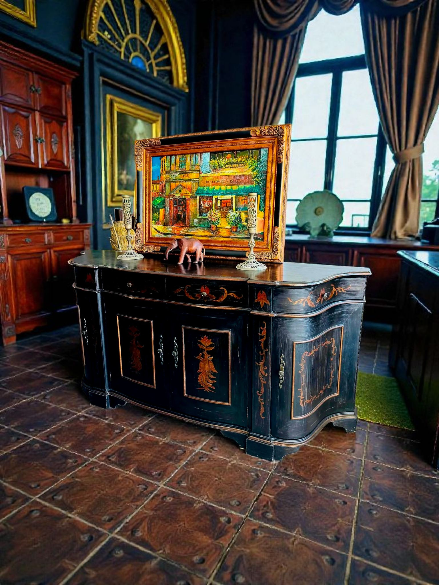 📢Bufetero Clásico con pinturas de Ave Fénix – Obra Maestra de Ultimate Accents📢