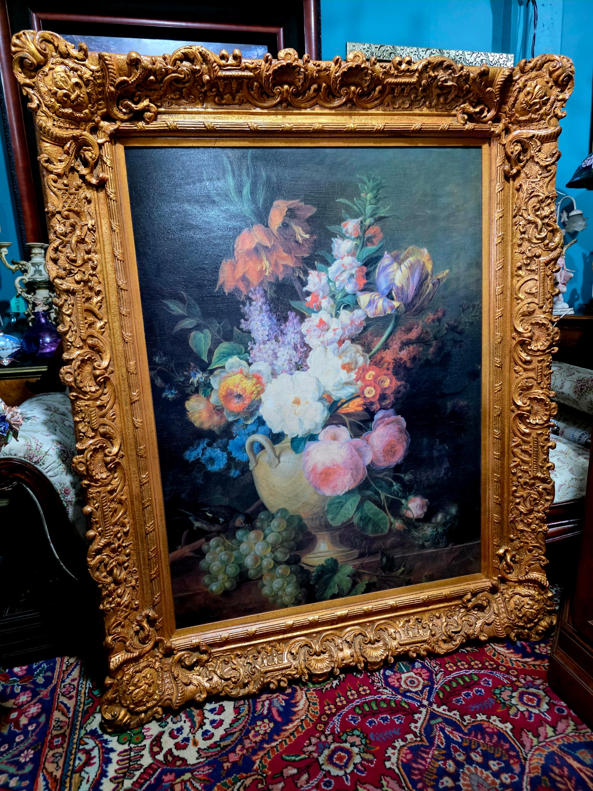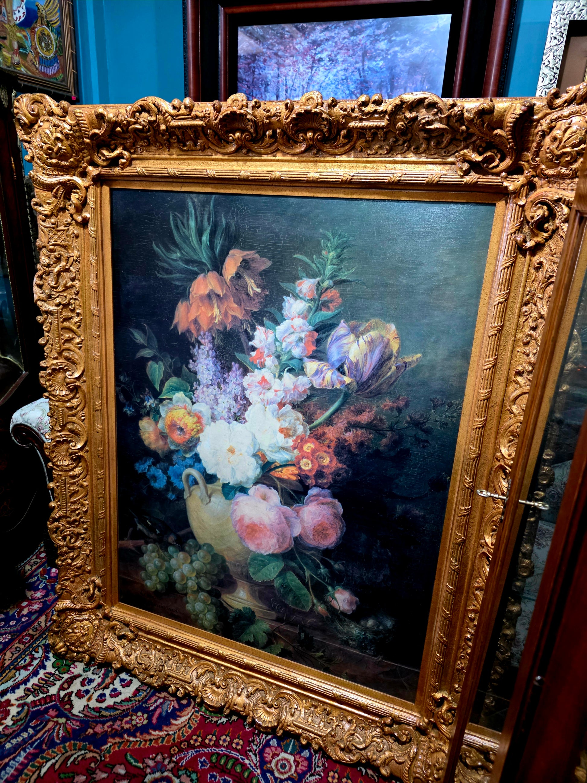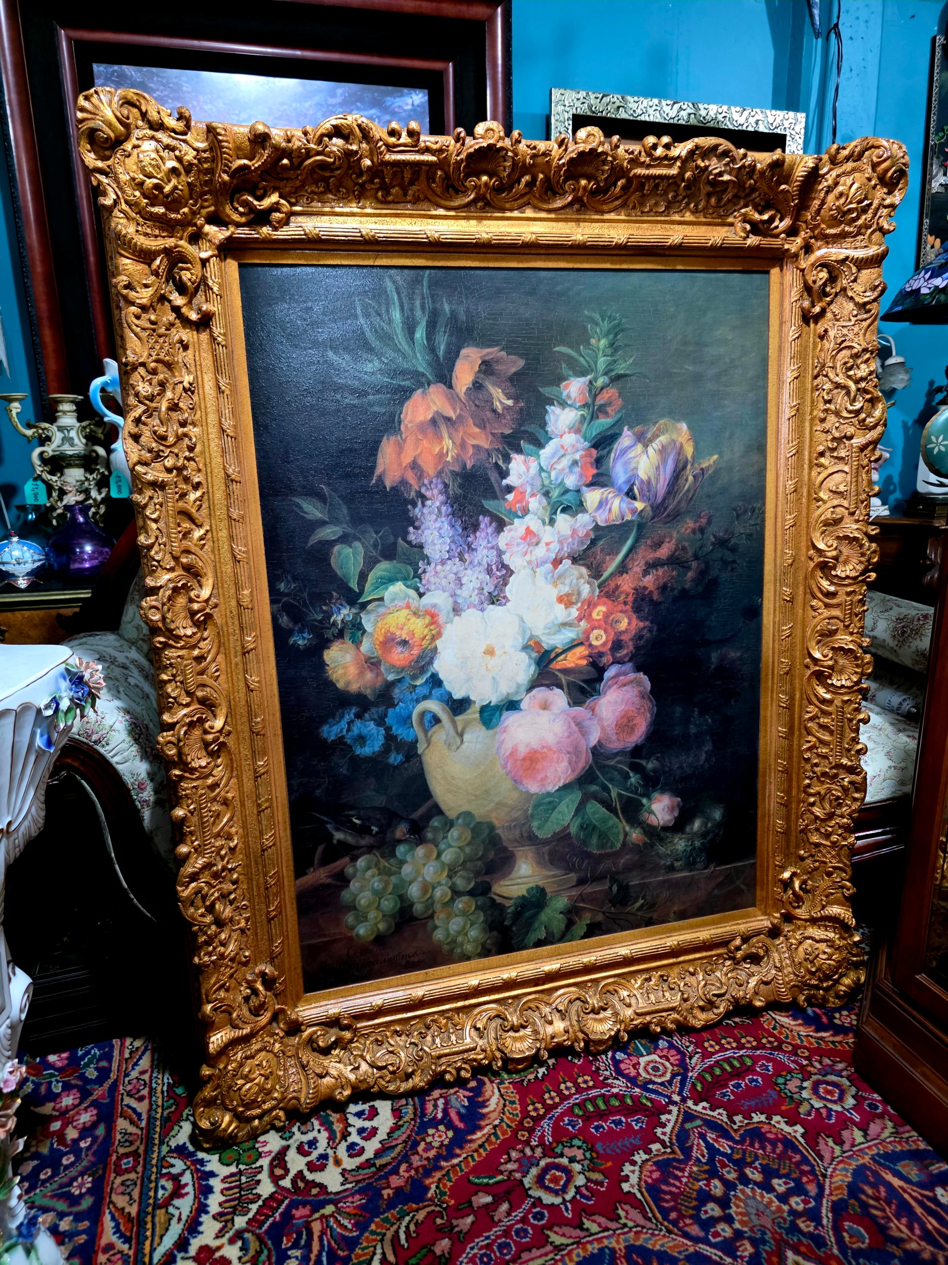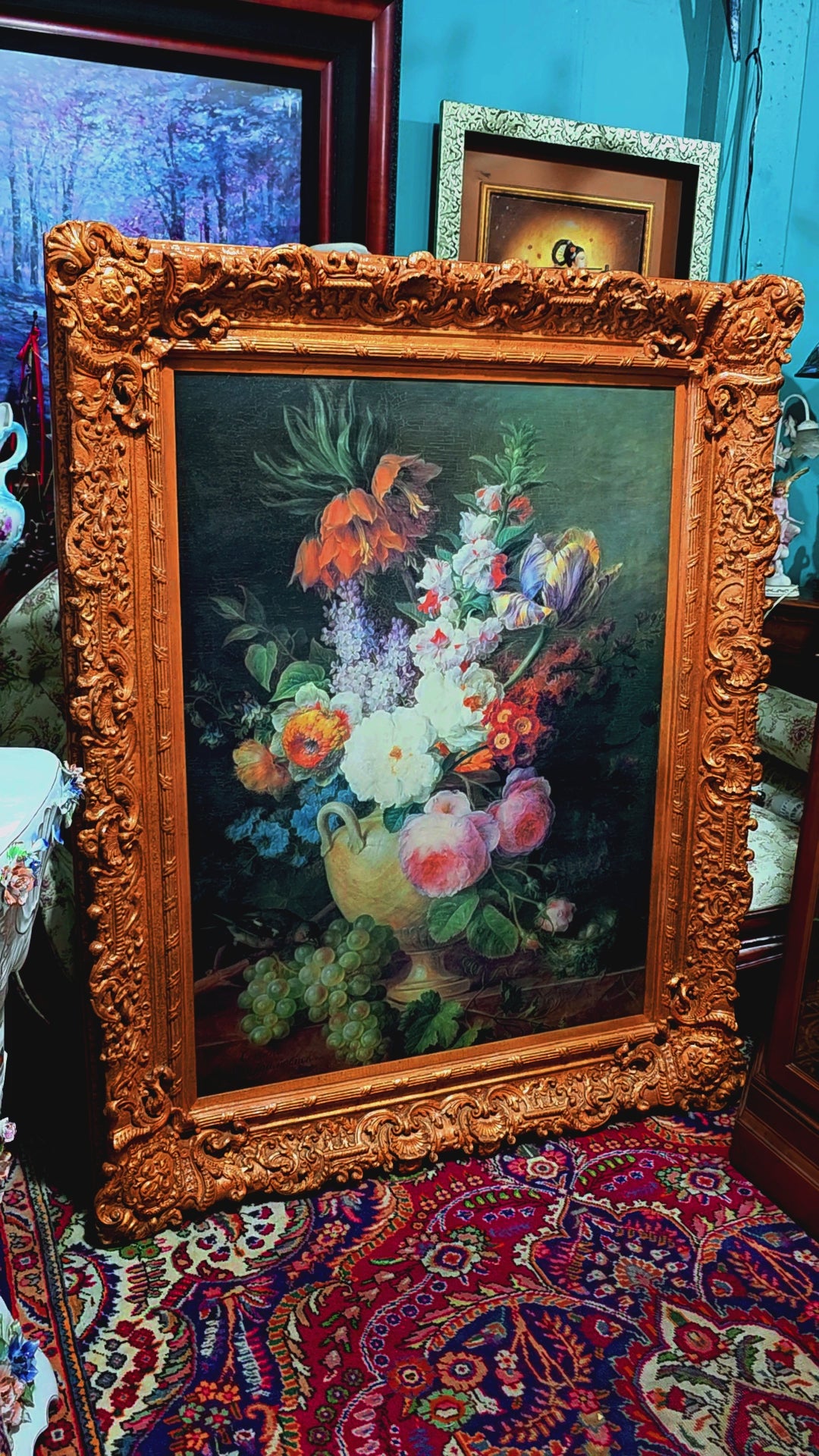 🌟 Pieza ideal para coleccionistas, amantes del arte floral o espacios que buscan una obra con presencia, color y legado. Esta pintura no solo decora: celebra la vida, la naturaleza y la elegancia de una época dorada.