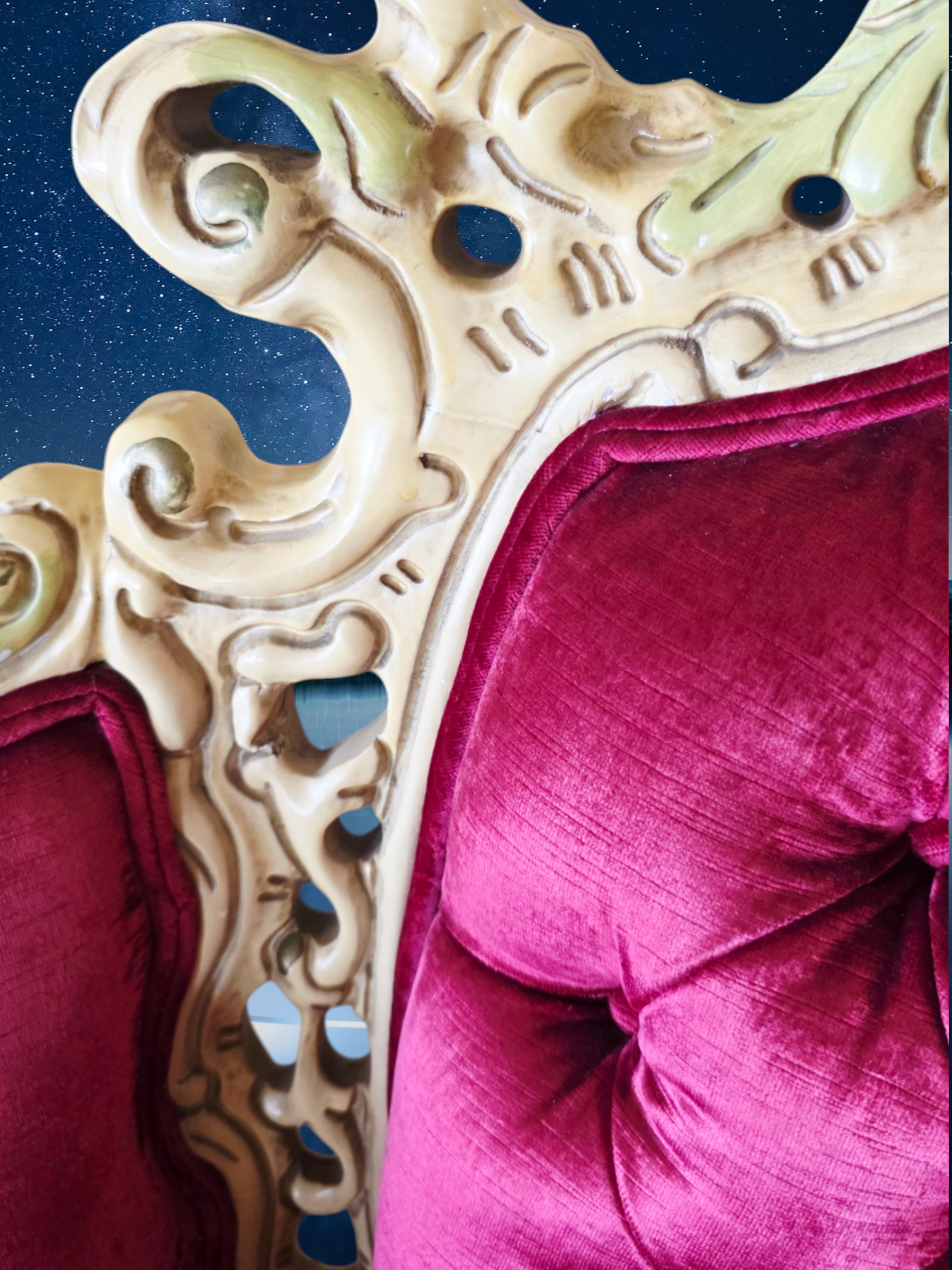 🎩 ✨ Sala de Epoca en Terciopelo Vino y Madera Tallada Color Marfil ✨🏛️
