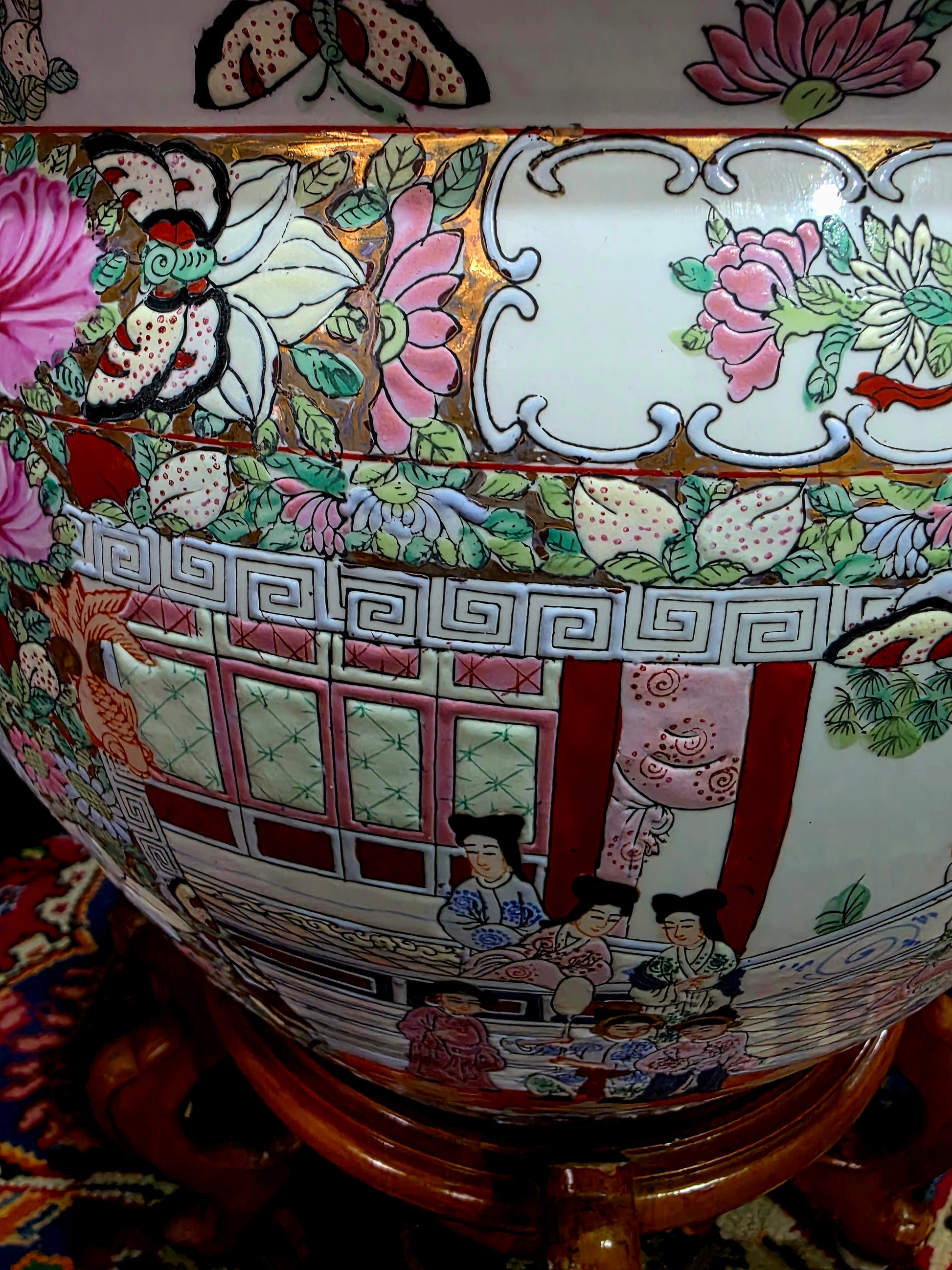 ✨ Floral Chinoiserie Koi Planter – Porcelana Imperial de la Dinastía Qing ✨