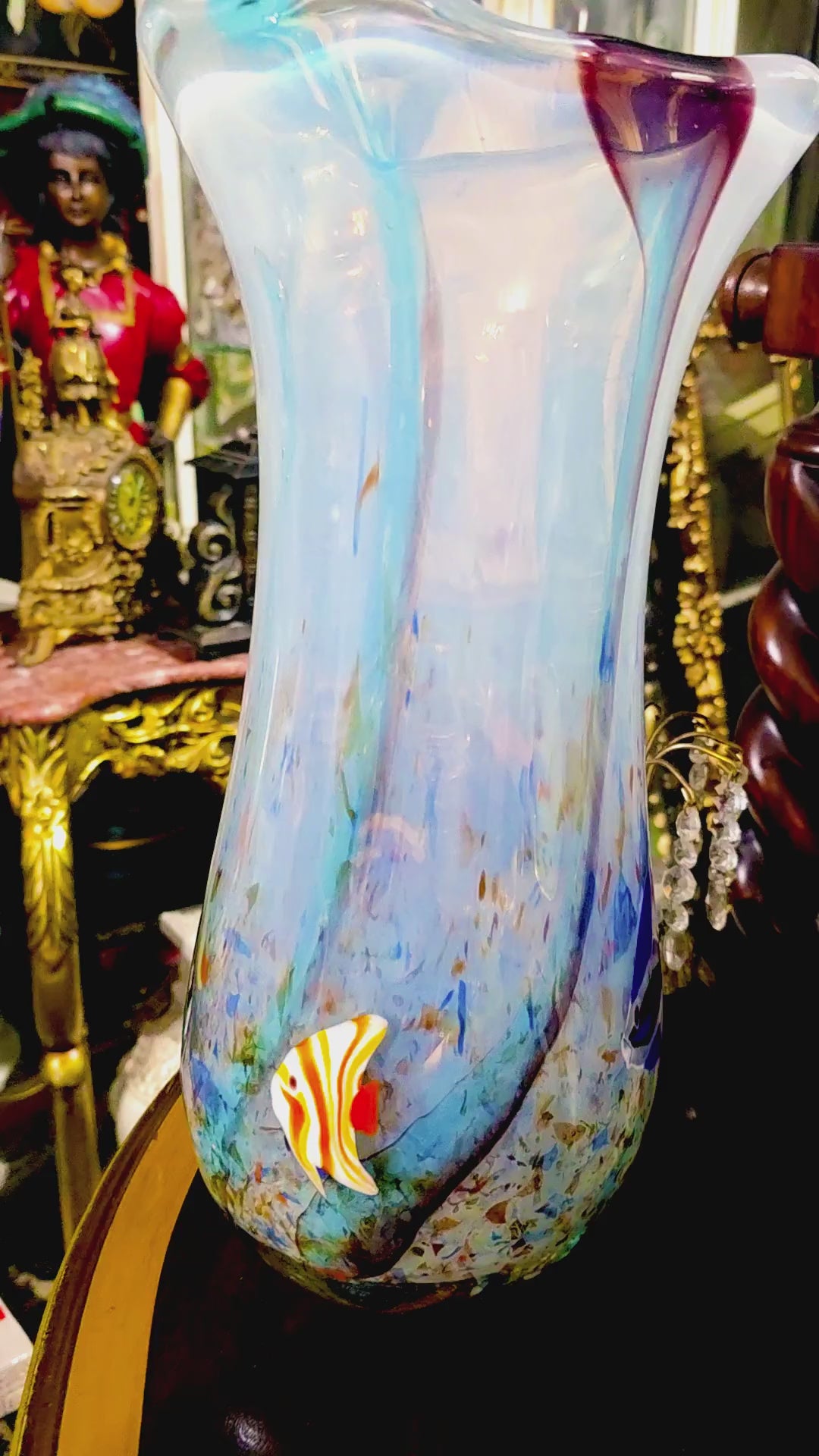 🐠🐡🐠 Jarron Murano con Motivos de Peces Tropicales – Arte en Cristal Soplado🐠🐡🐠