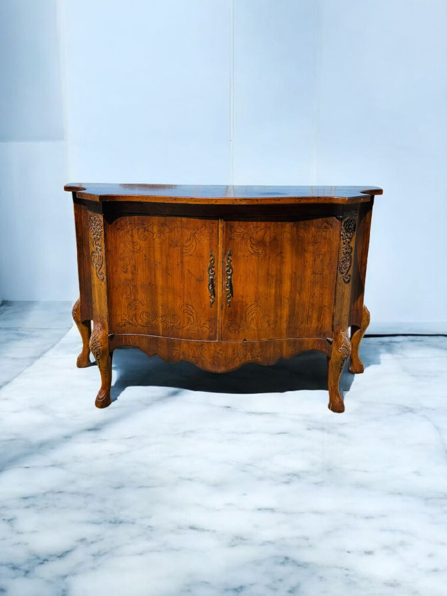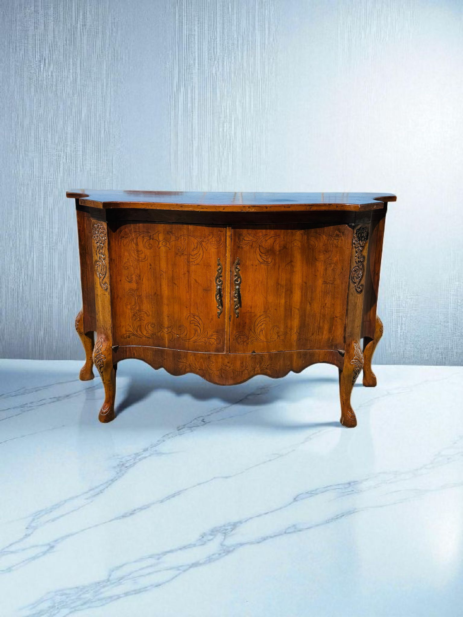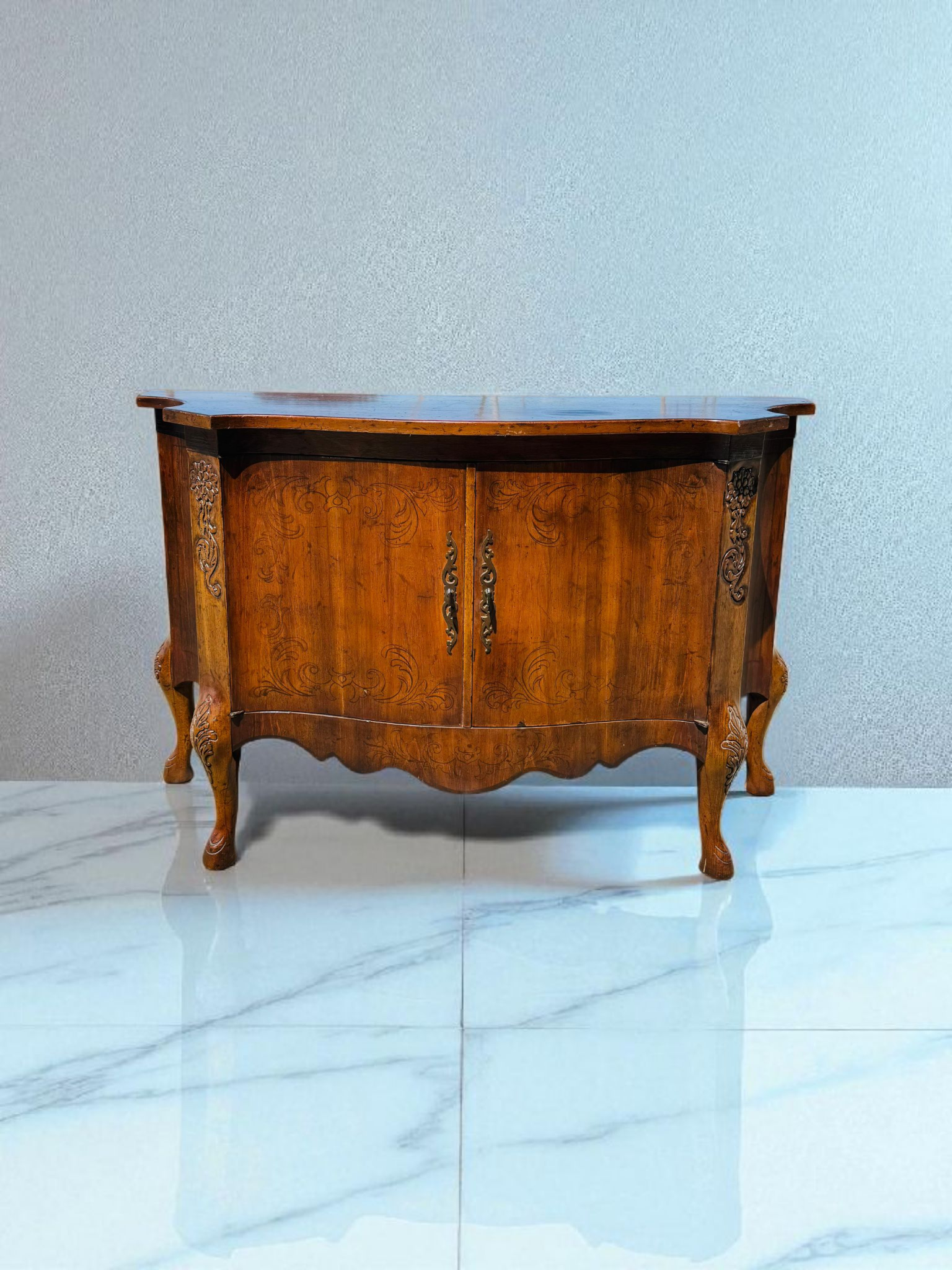 Sumérgete en el encanto del diseño clásico con esta cómoda italiana tallada a mano, una obra maestra que fusiona la nobleza de la madera de nogal con la sofisticación del arte decorativo europeo. Cada curva, cada relieve, revela la destreza artesanal que da vida a esta pieza única.