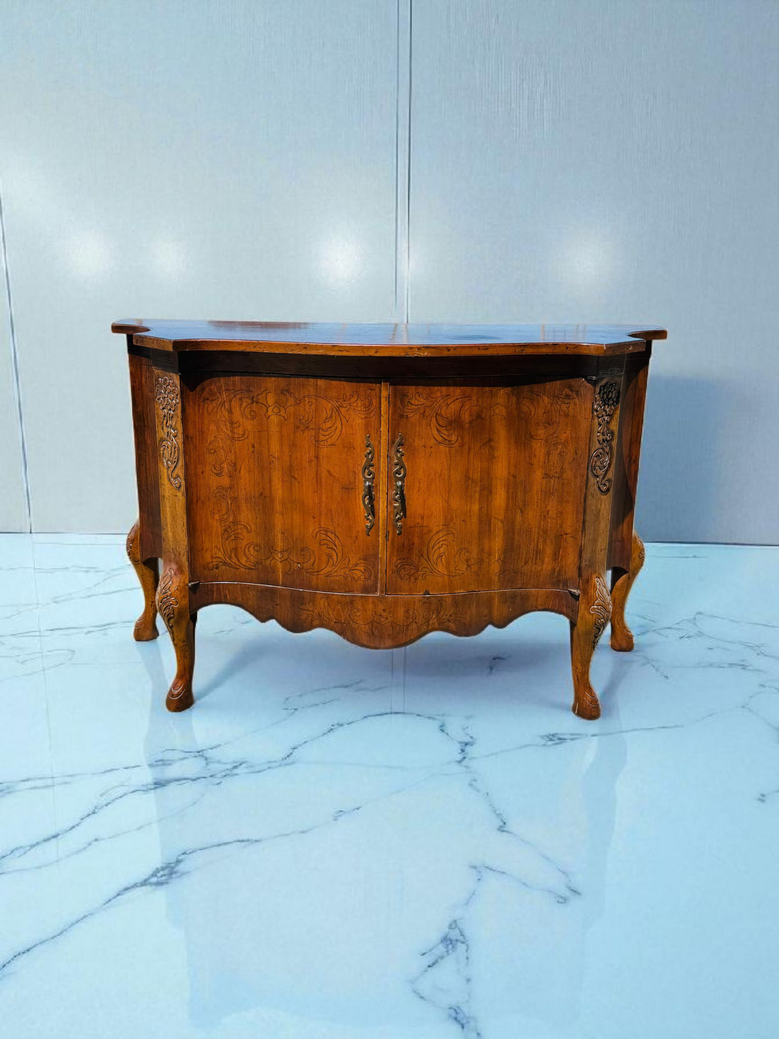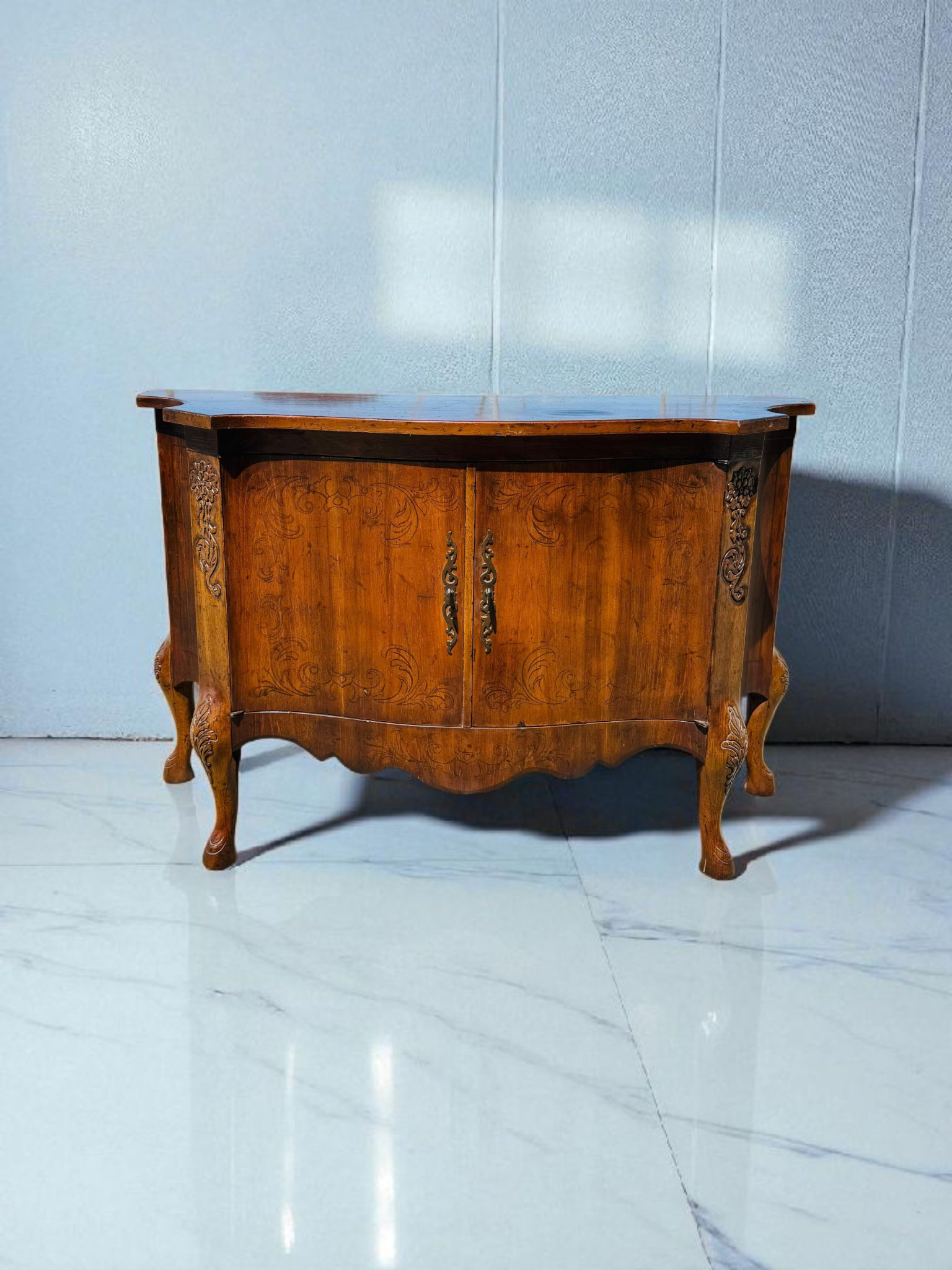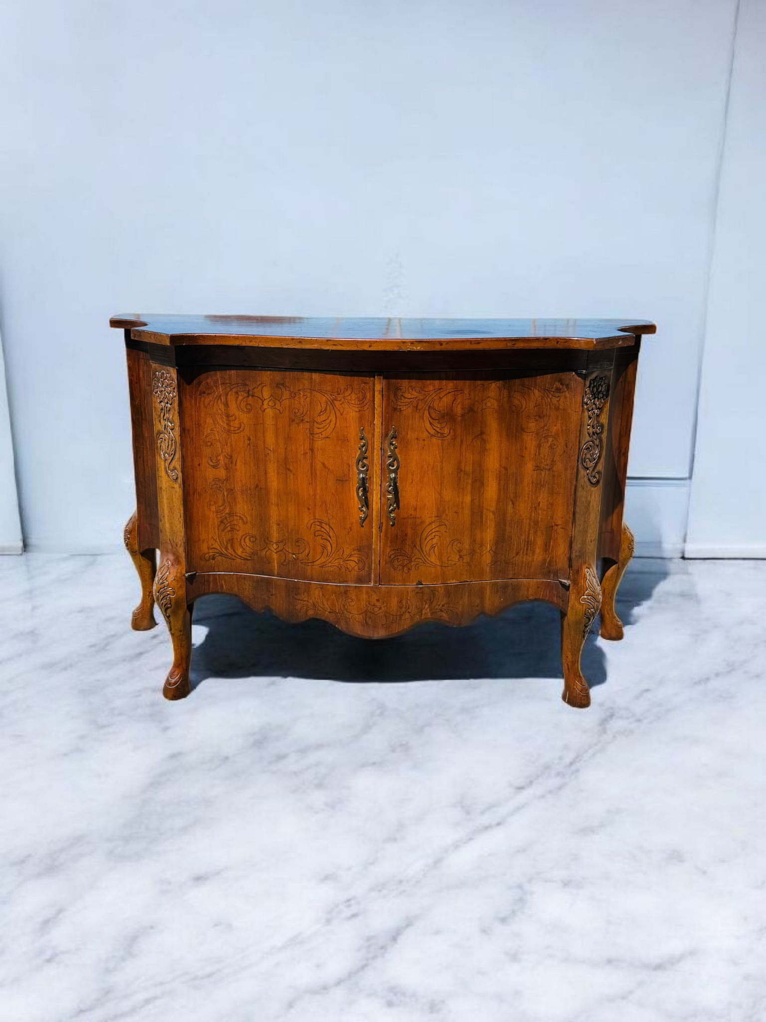 Sumérgete en el encanto del diseño clásico con esta cómoda italiana tallada a mano, una obra maestra que fusiona la nobleza de la madera de nogal con la sofisticación del arte decorativo europeo. Cada curva, cada relieve, revela la destreza artesanal que da vida a esta pieza única.