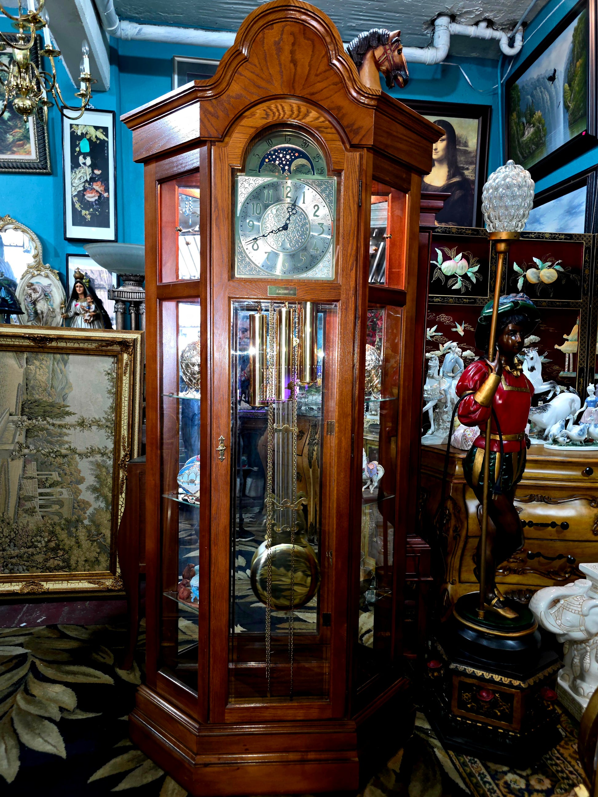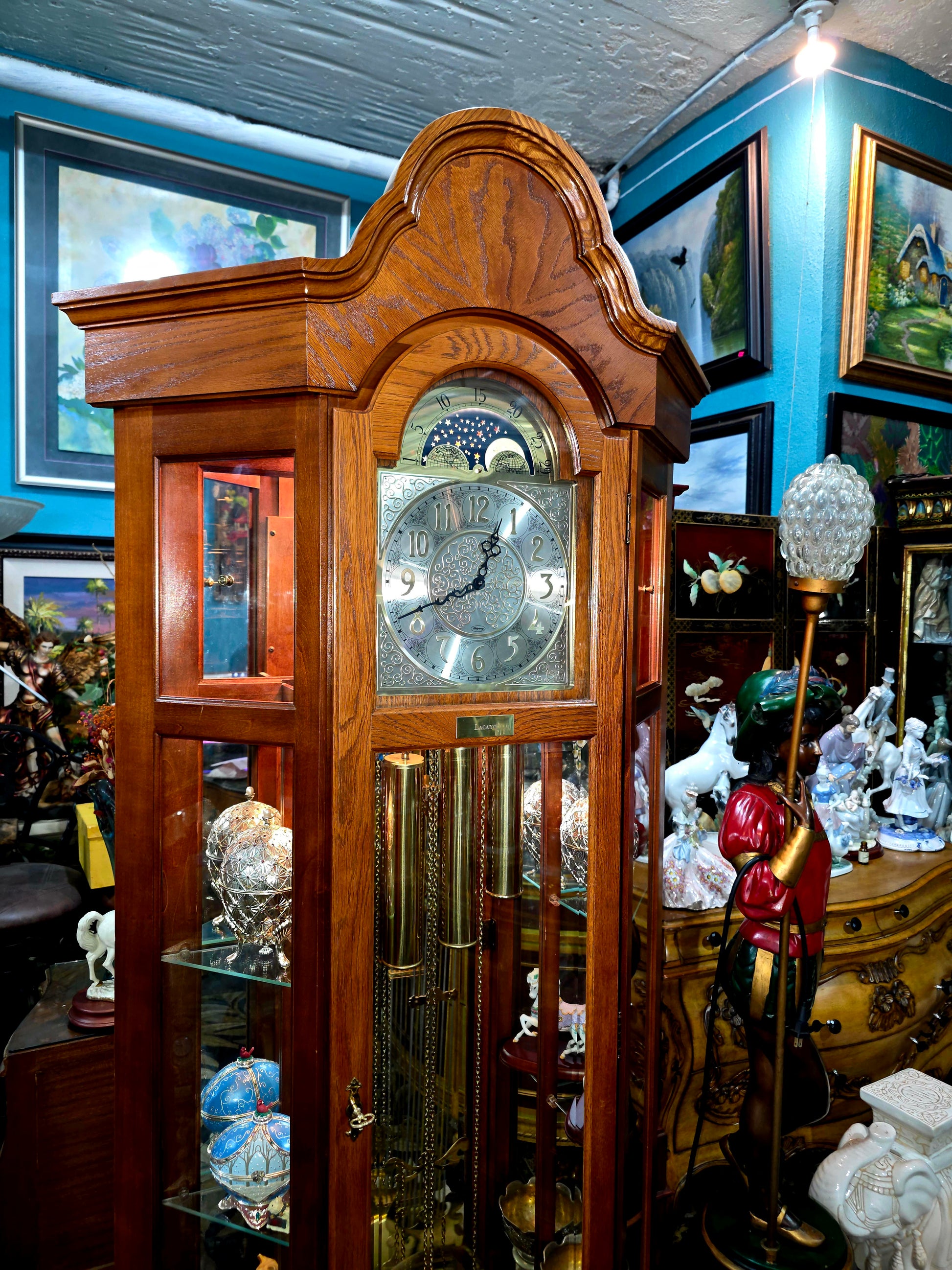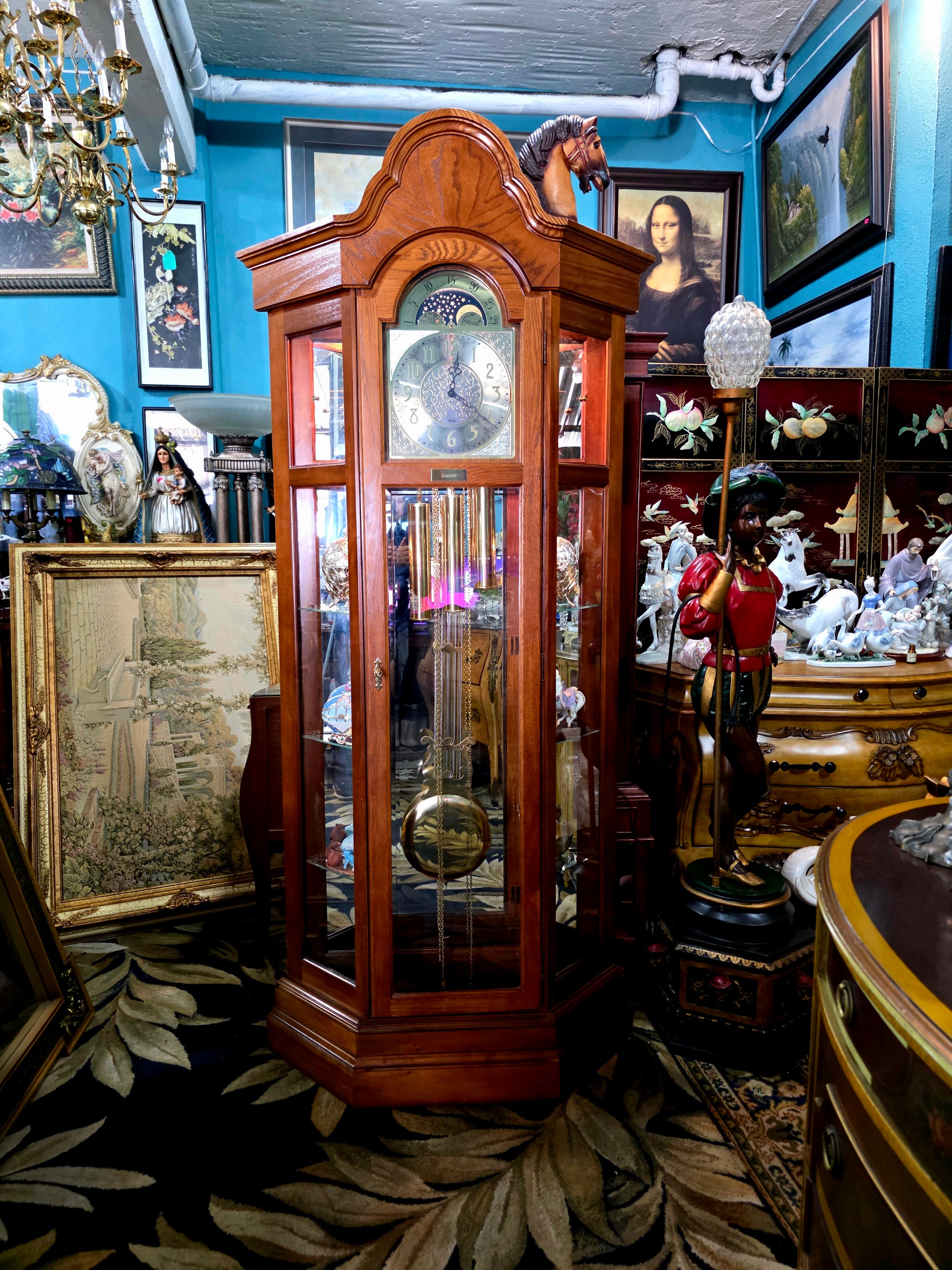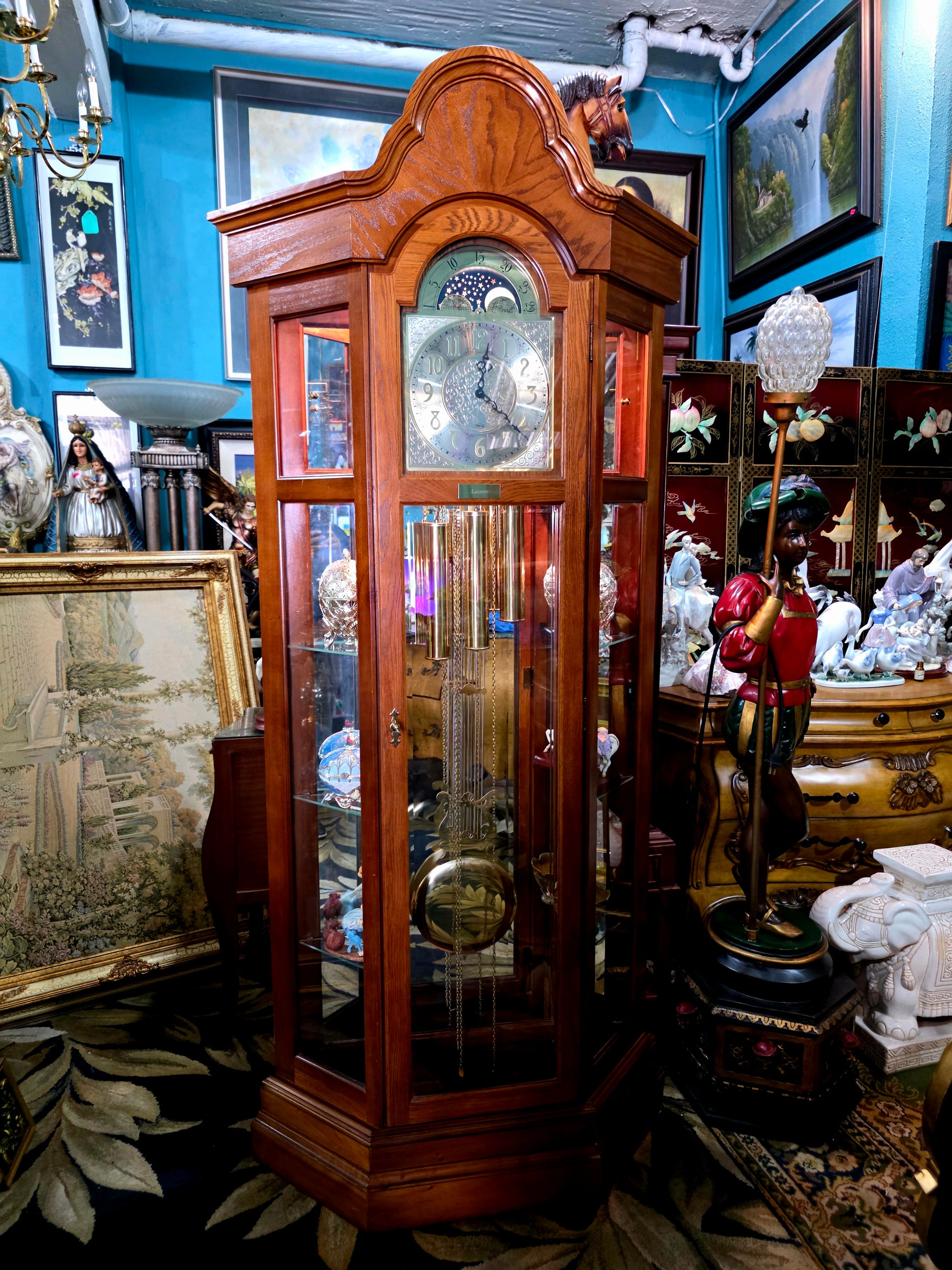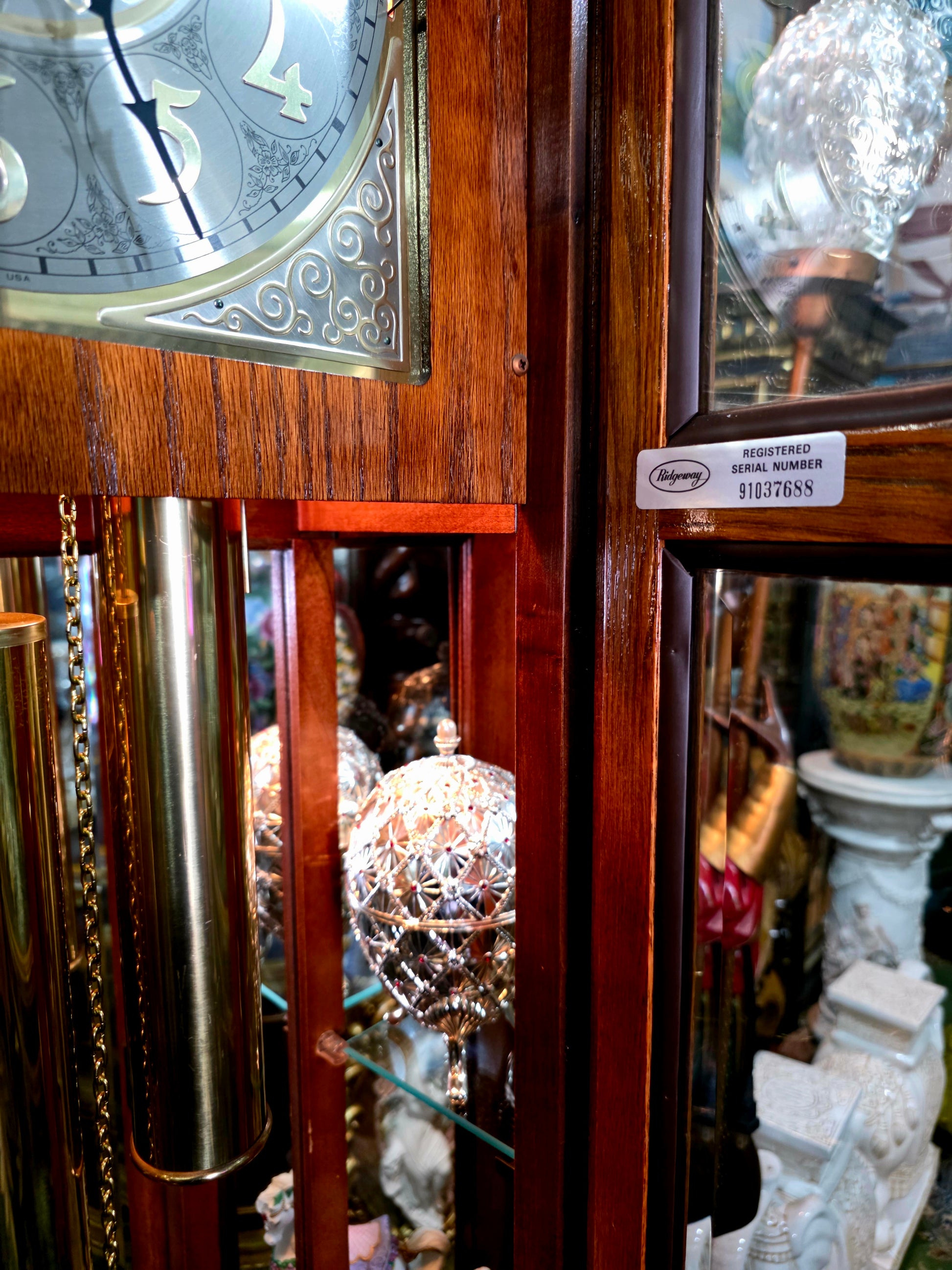 📌 #RosaritoAntiques #RelojDePie #RidgewayClocks #EleganciaAmericana #DecoraciónClásica #AntigüedadesConHistoria #TiempoYArte #PlacaLACAYO #CampanadasMusicales