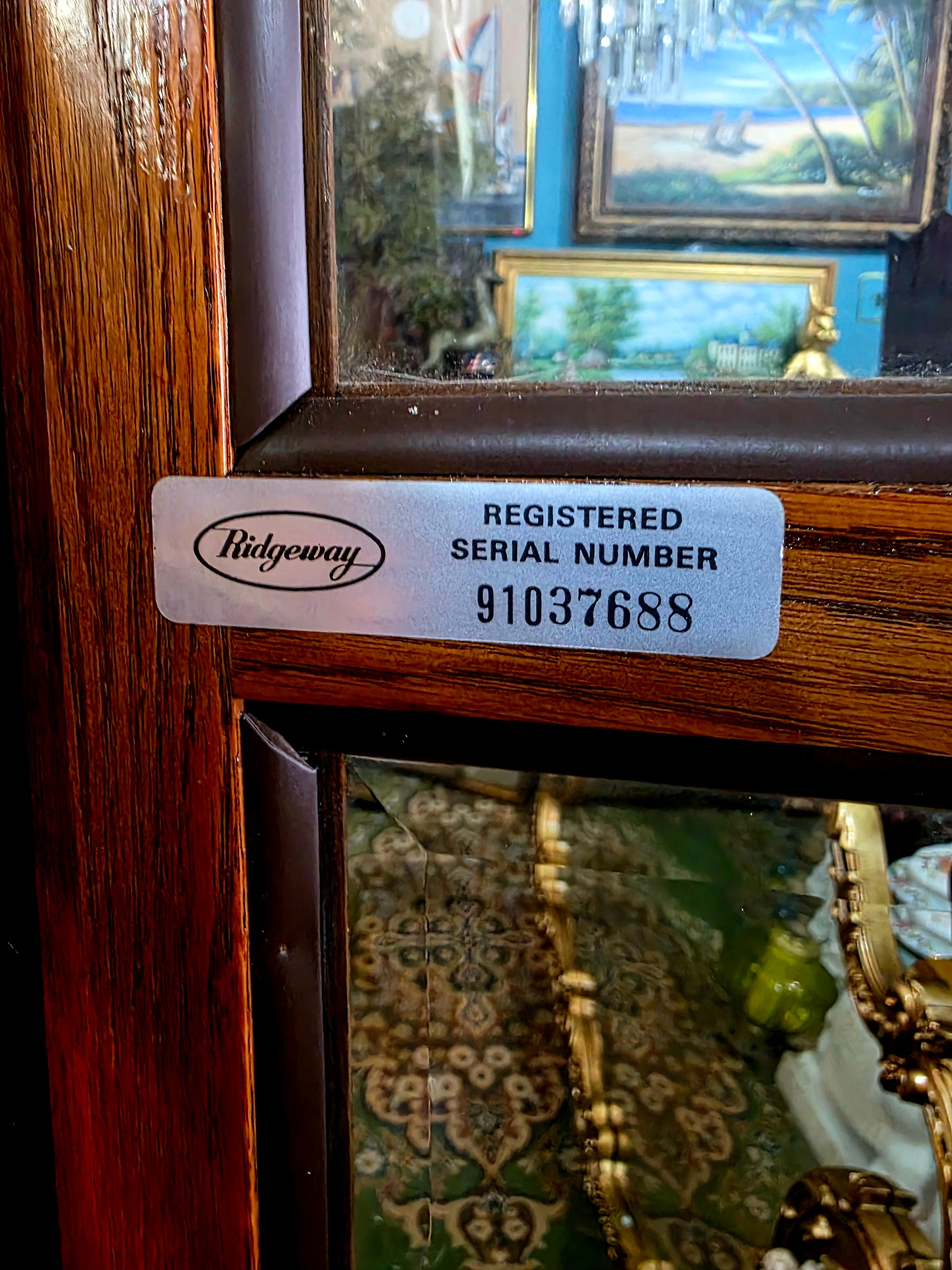 Rosarito Antiques presenta una pieza de noble linaje y precisión artesanal: un reloj de pie elaborado por la prestigiosa firma norteamericana Ridgeway, con placa grabada “LACAYO” y número de serie 91037688. Esta obra maestra combina ingeniería horológica con diseño escultórico, evocando la solemnidad de los grandes salones y la serenidad del tiempo bien vivido.