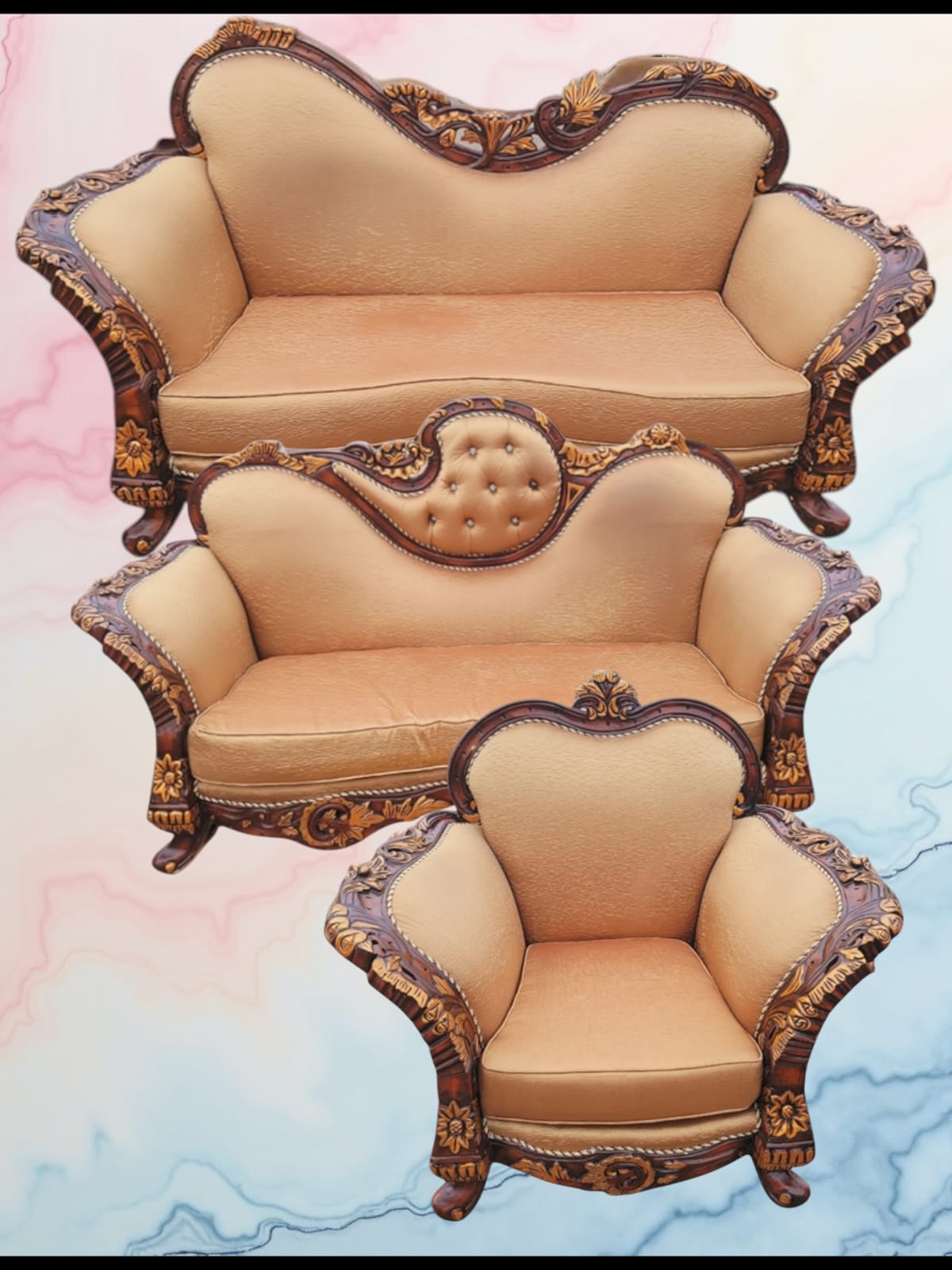 Esta majestuosa sala, vendida en Rosarito Antique, encapsula la esencia del estilo clásico con una elegancia que atraviesa el tiempo. Compuesta por un sofá de tres plazas, un sofá de dos plazas y un sillón individual, cada pieza rebosa sofisticación y un refinado toque artesanal.