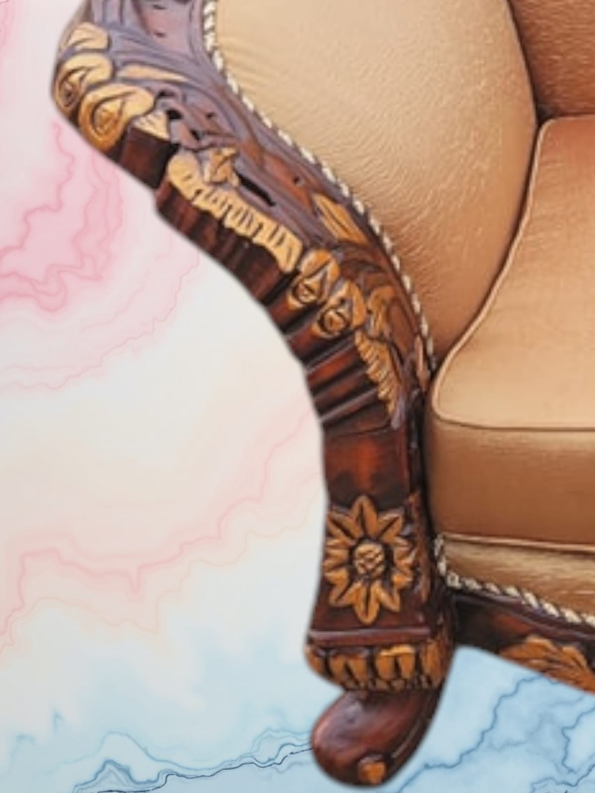 🪵 Artesanía de Madera Tallada El marco de cada pieza está elaborado con madera oscura de alta calidad, cuidadosamente tallada a mano con intrincados detalles ornamentales. Los motivos florales y las curvas elegantes reflejan la excelencia artesanal y evocan un aire de realeza y tradición.