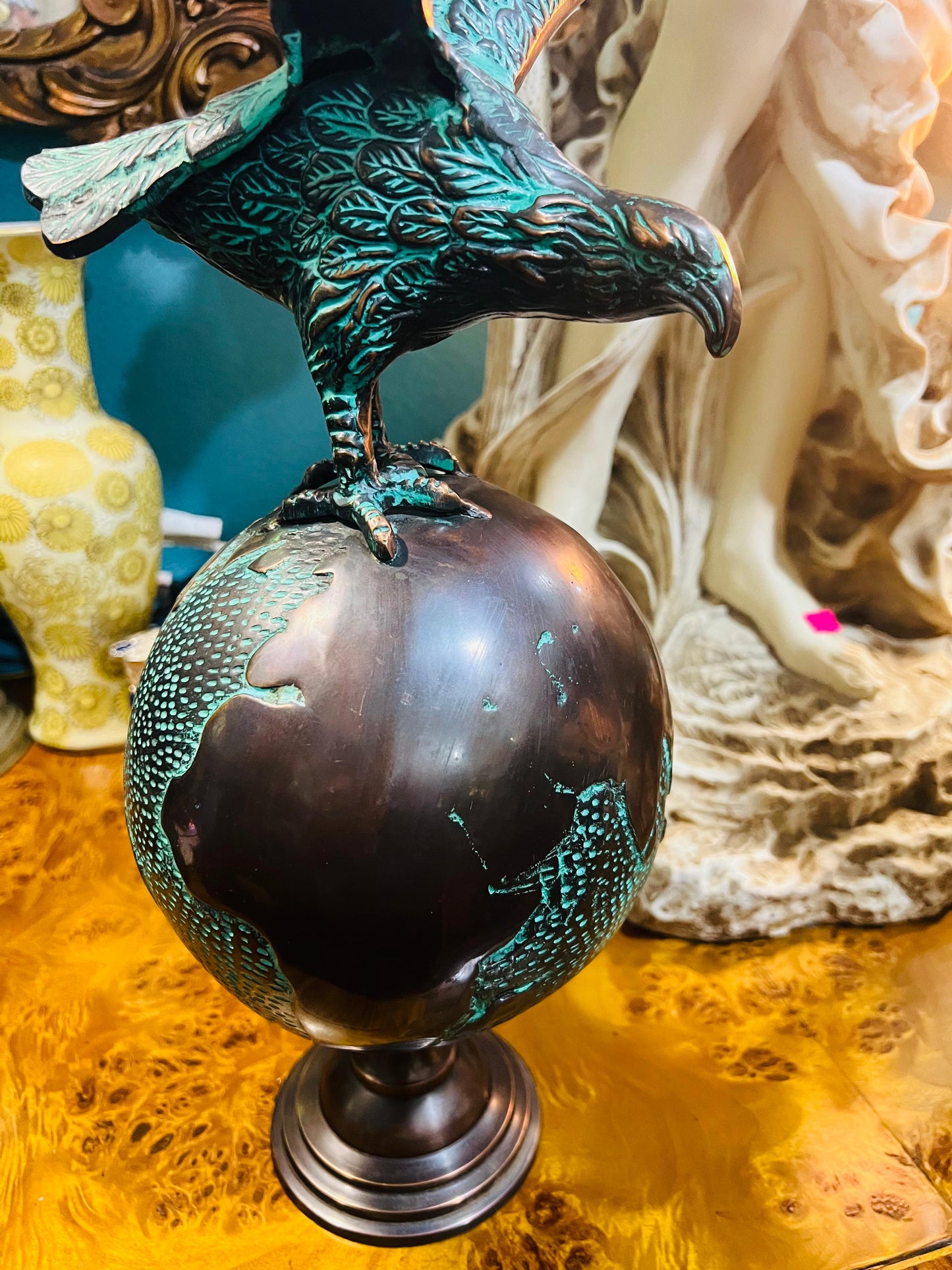 🦅 Impresionante Escultura en bronce de Águila en Vuelo con Globo Terráqueo en Venta 🦅