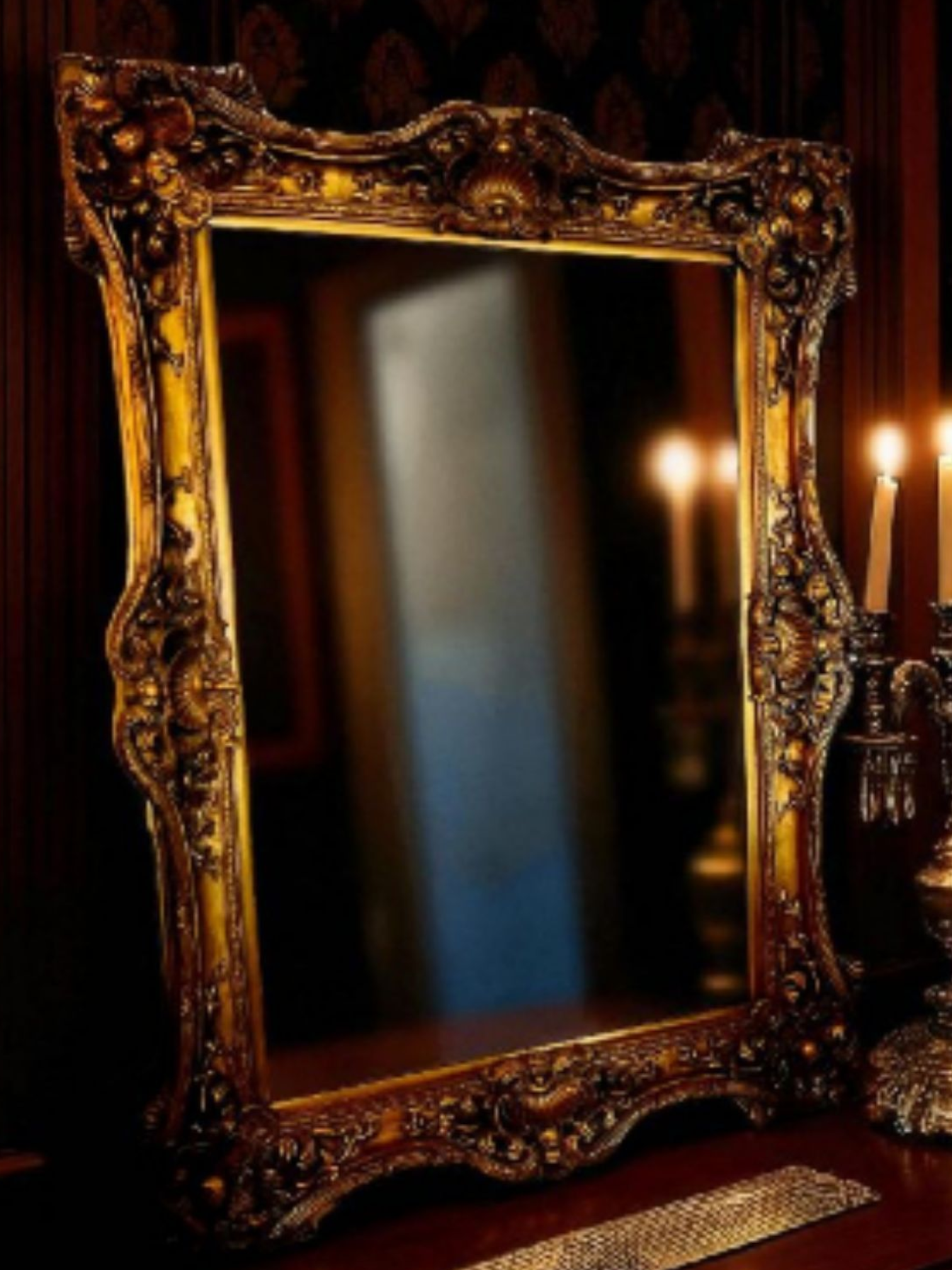 Artesanía Única: El marco del espejo está meticulosamente elaborado con atención al detalle, mostrando una mezcla de elementos dorados que añaden un toque de sofisticación a su diseño.