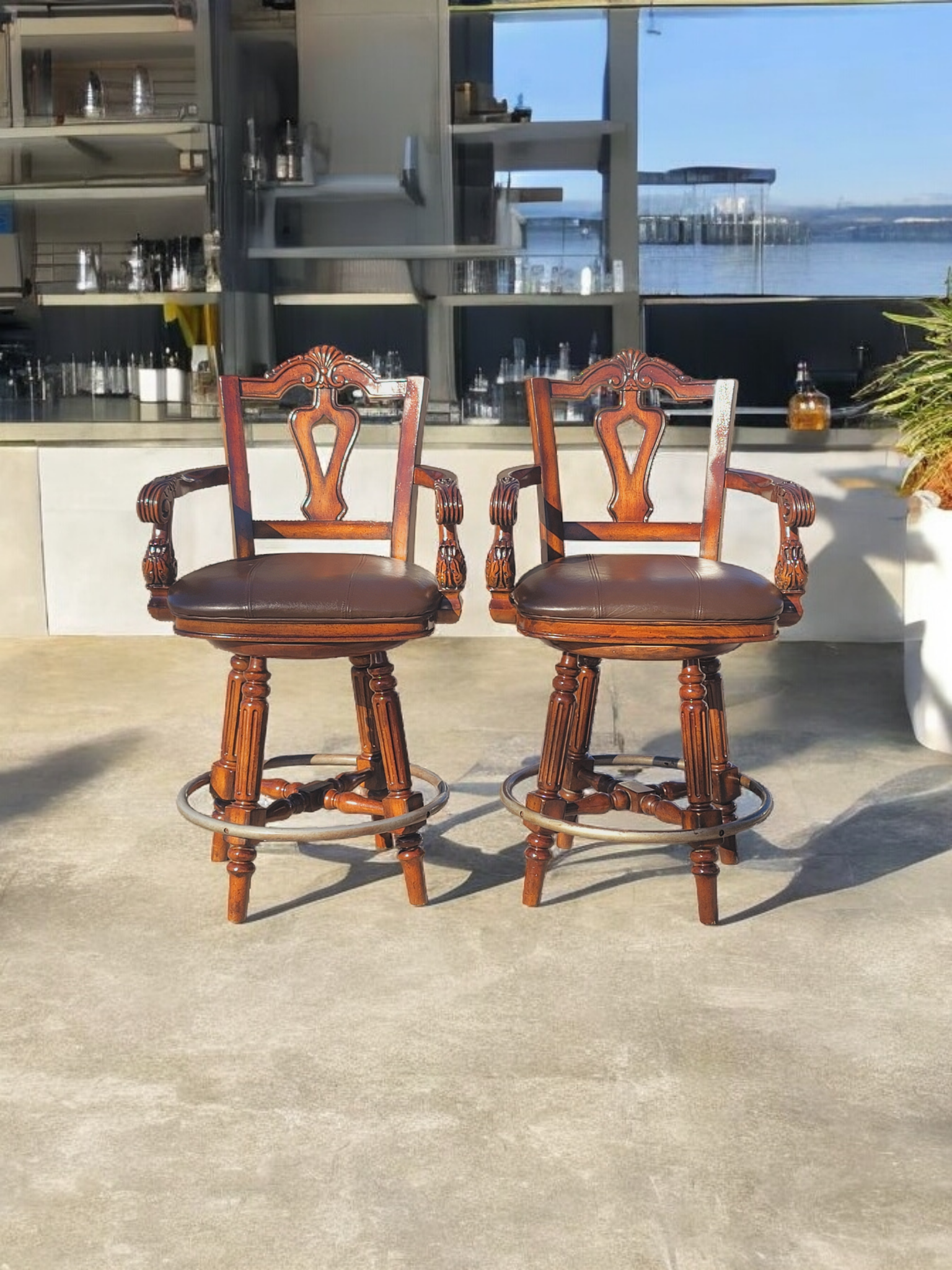 Añade un toque de estilo clásico a tu cocina o bar con este juego de bancos giratorios. Diseñados con detalles elegantes, un asiento de piel sintética y acción de giro de 360 grados, estos bancos son la perfecta combinación de comodidad y sofisticación.